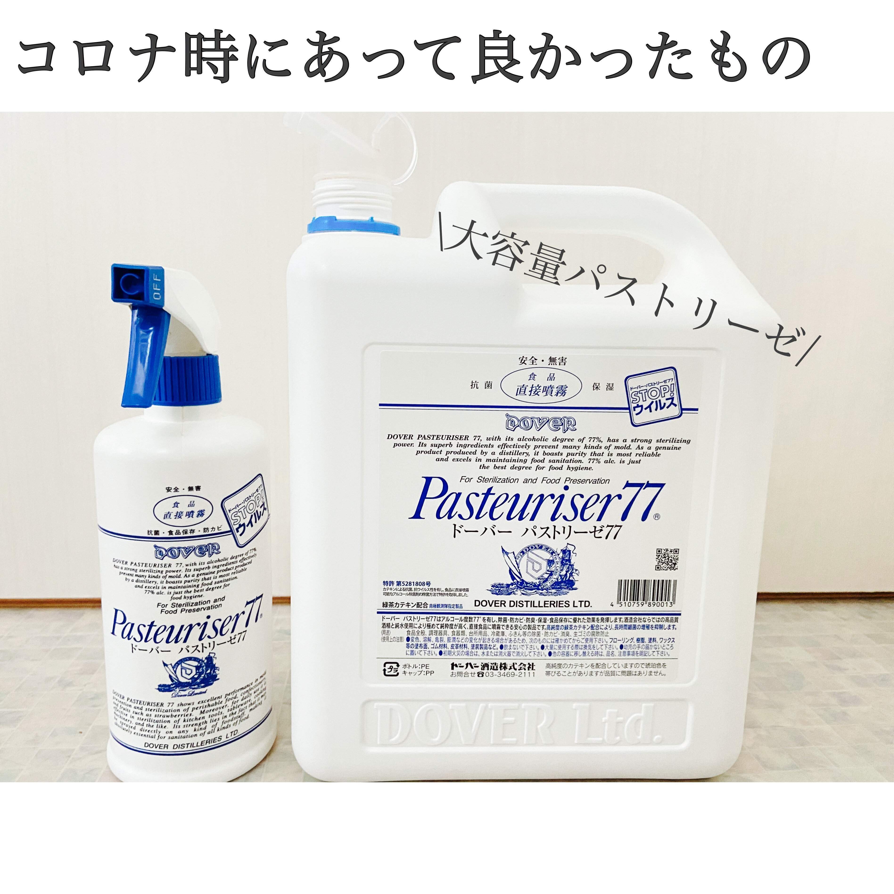 元々お掃除に愛用しているパストリーゼ。今ネットでは10倍の値がついていて買うことができませんが(早く元通りになって欲しい!)、5Lで大容量買いしていたおかげでまだ数カ月は大丈夫そうです。コロナ時だからというわけでなく、毎日すべての机とキッチンを拭きあげるのに掃除用具の1つとして使っていたので、そういえば除菌にもなっていた!という感じ。わが家は子ども3人、私も週5勤務でがっつり働いているので、ウイルスがリレーすると大変な状況に!一度家族全員、胃腸風邪でやられたときから徹底して行っていることがここで役に立ちました!