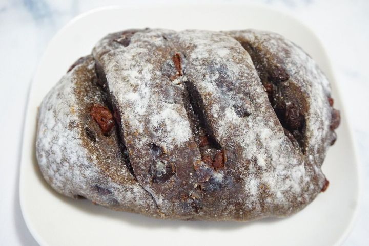 フランスパンより柔らかい歯応えのある生地に、ほろ苦いチョコがちりばめられています。