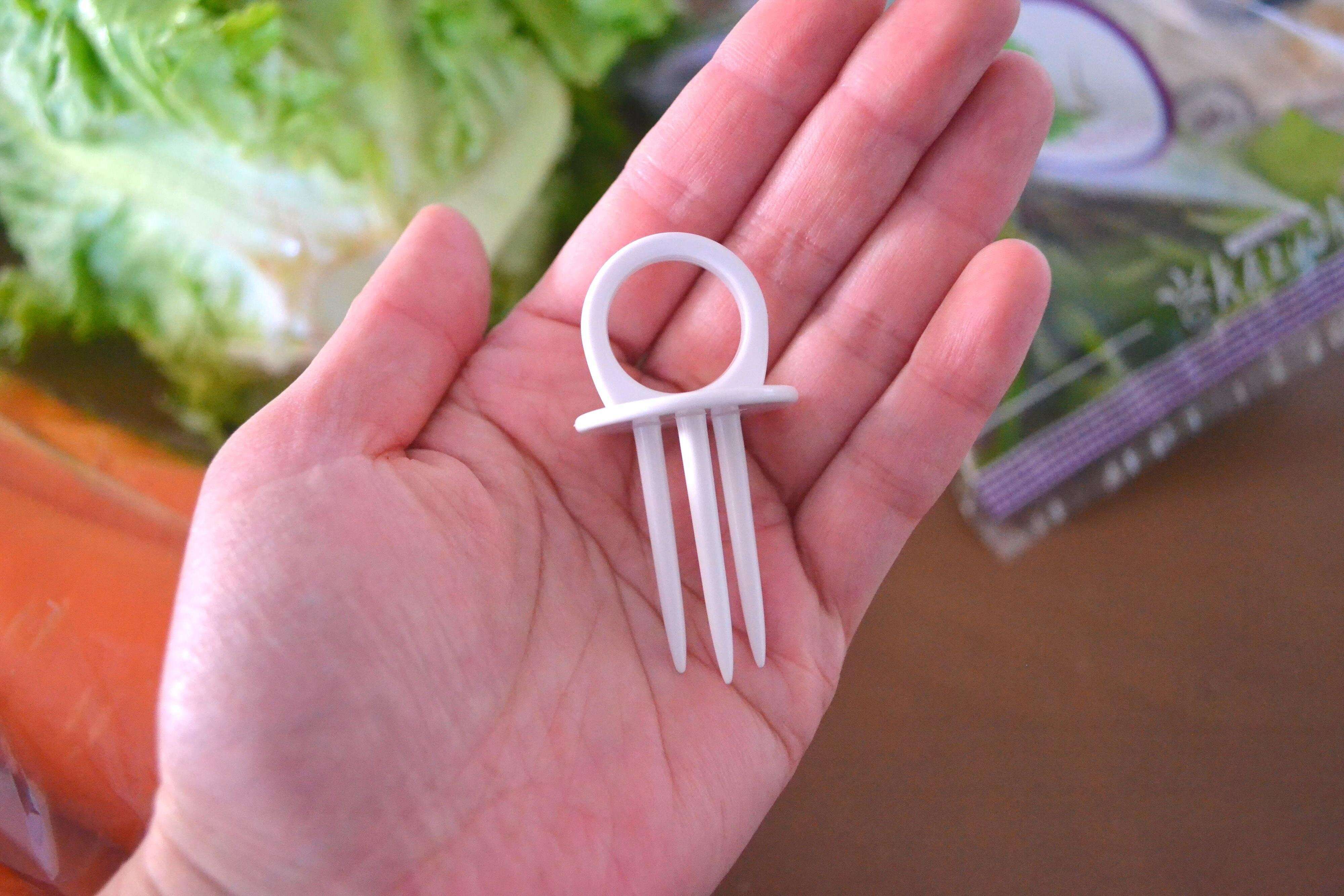 こちらの商品は、レタスやキャベツなどの葉物野菜の芯に刺して使います。