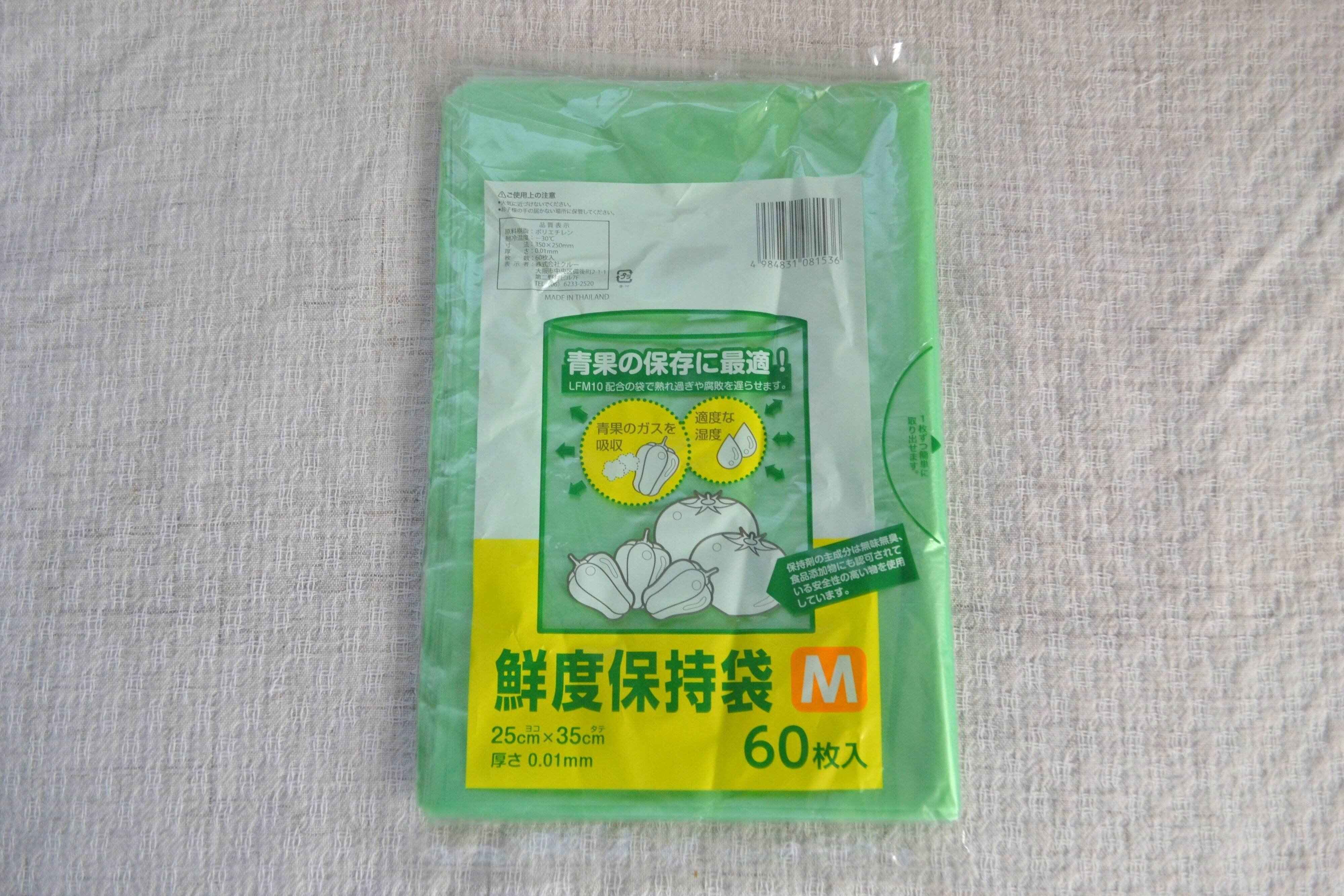 「鮮度保持袋」は、袋に配合された成分が青果から発生するガスを吸収し、袋の中の湿度を適度に保つことで熟れすぎや腐敗を遅らせてくれるそうです。