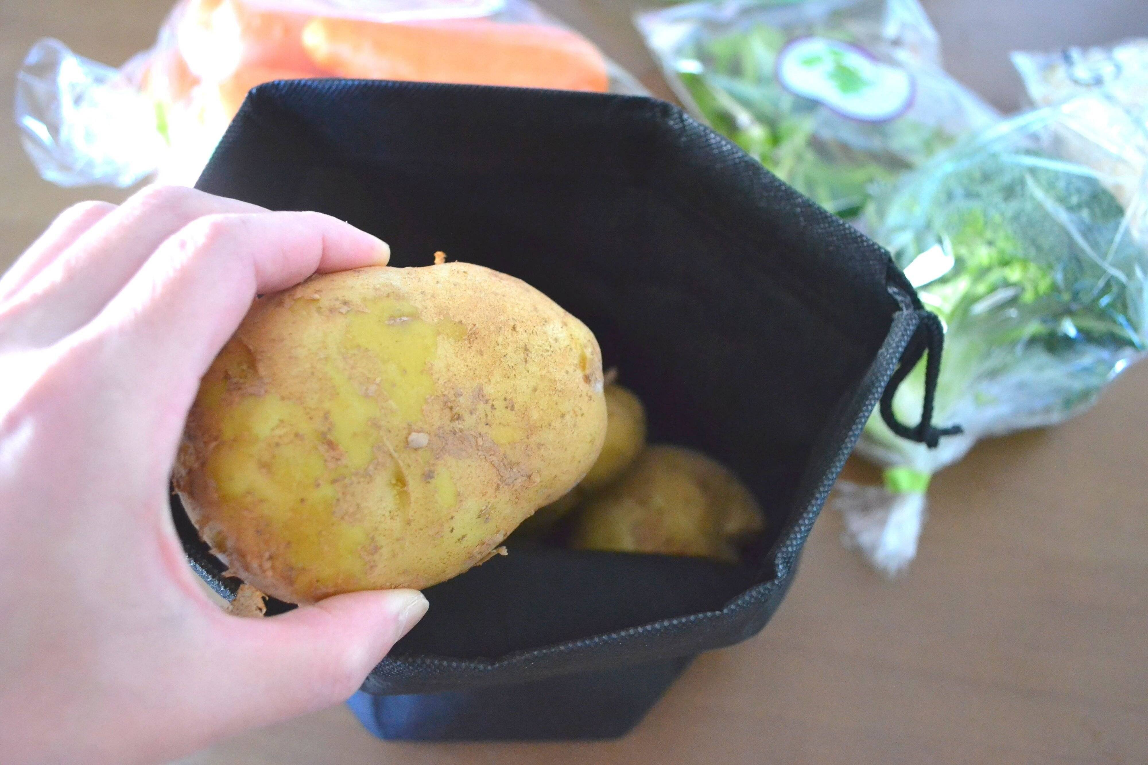 購入してきたじゃがいもをこの袋に保存しておけば、光が当たらないようにして緑化を防いでくれるのです。
