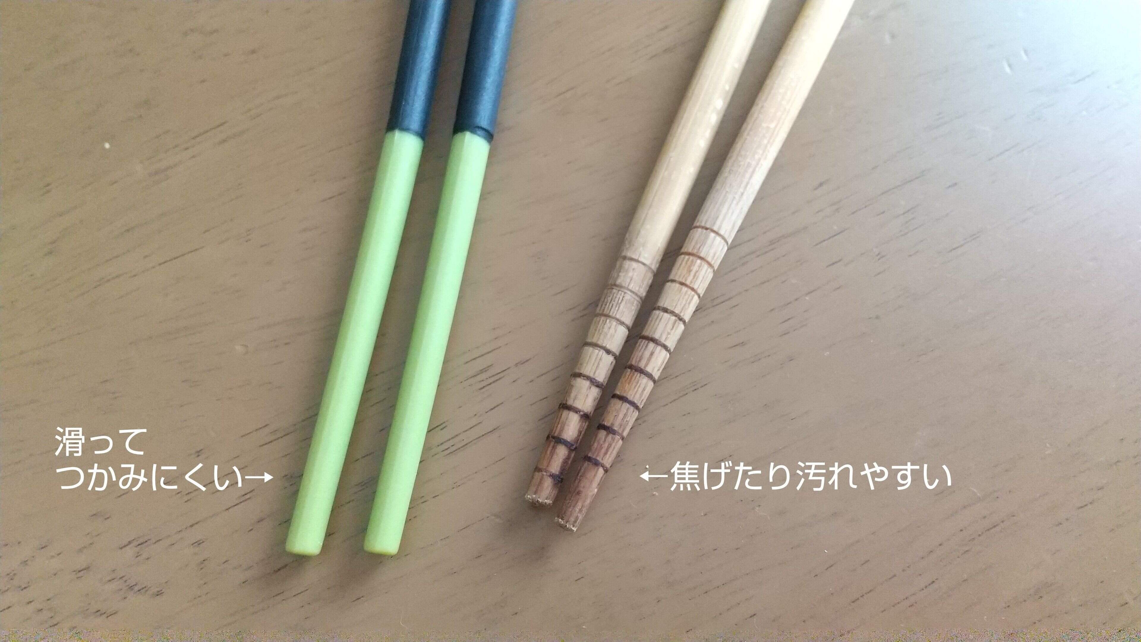 竹ばし → しっかりつかめるが、焦げたり汚れがつきやすいのが難点。