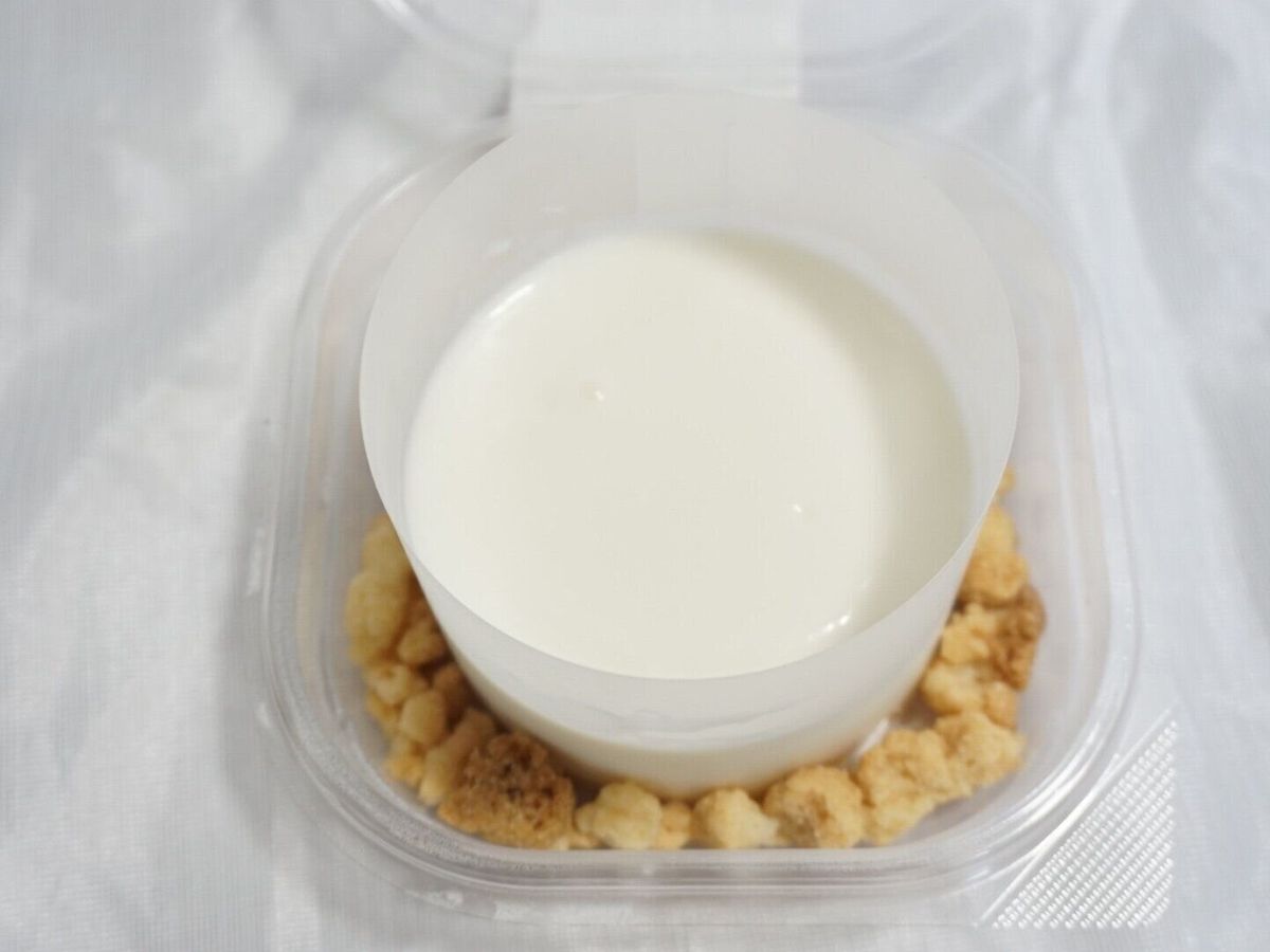 フィルムを持ち上げて外すと、ホイップクリームが流れ出てくるという仕掛けになっています。