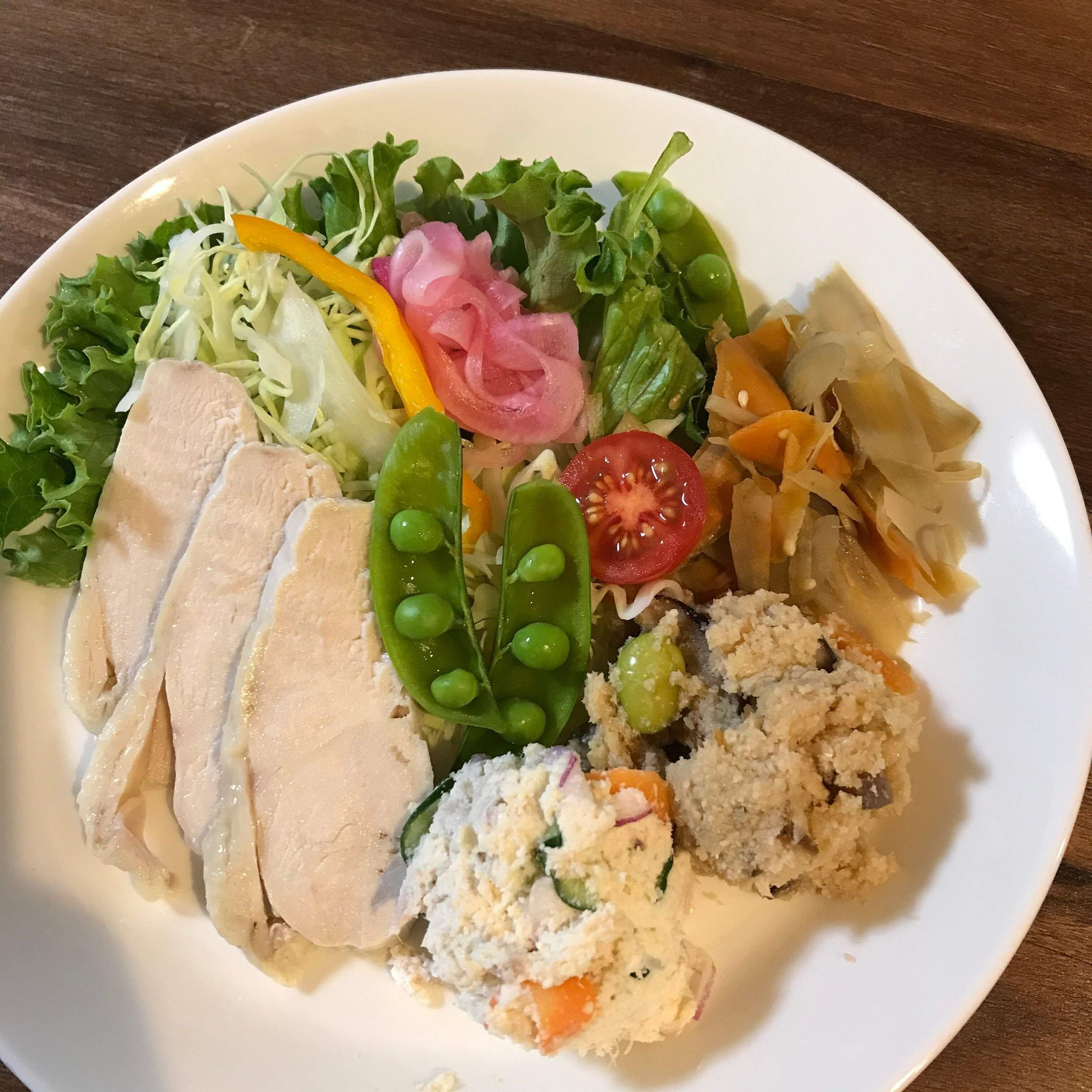 サラダにのせるものをいろいろ工夫して、まずは元の体重に戻せるようにがんばります。