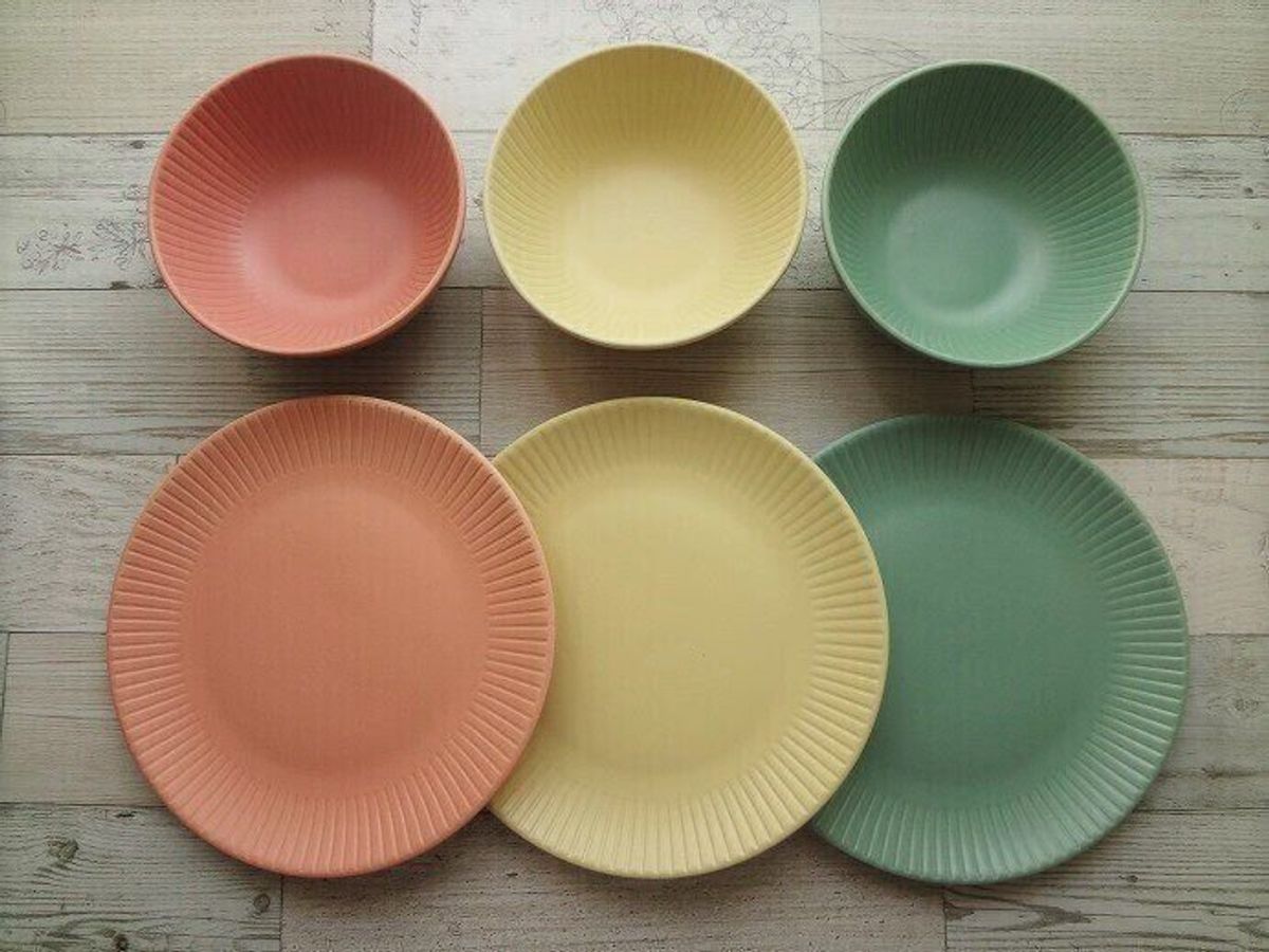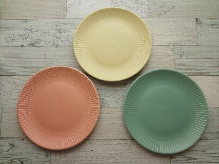 ダスティカラーのプレートとボウルです。流行のくすみカラーで、色はピンク、ブルー、イエローの3色ありました。マットな質感がとてもオシャレ。