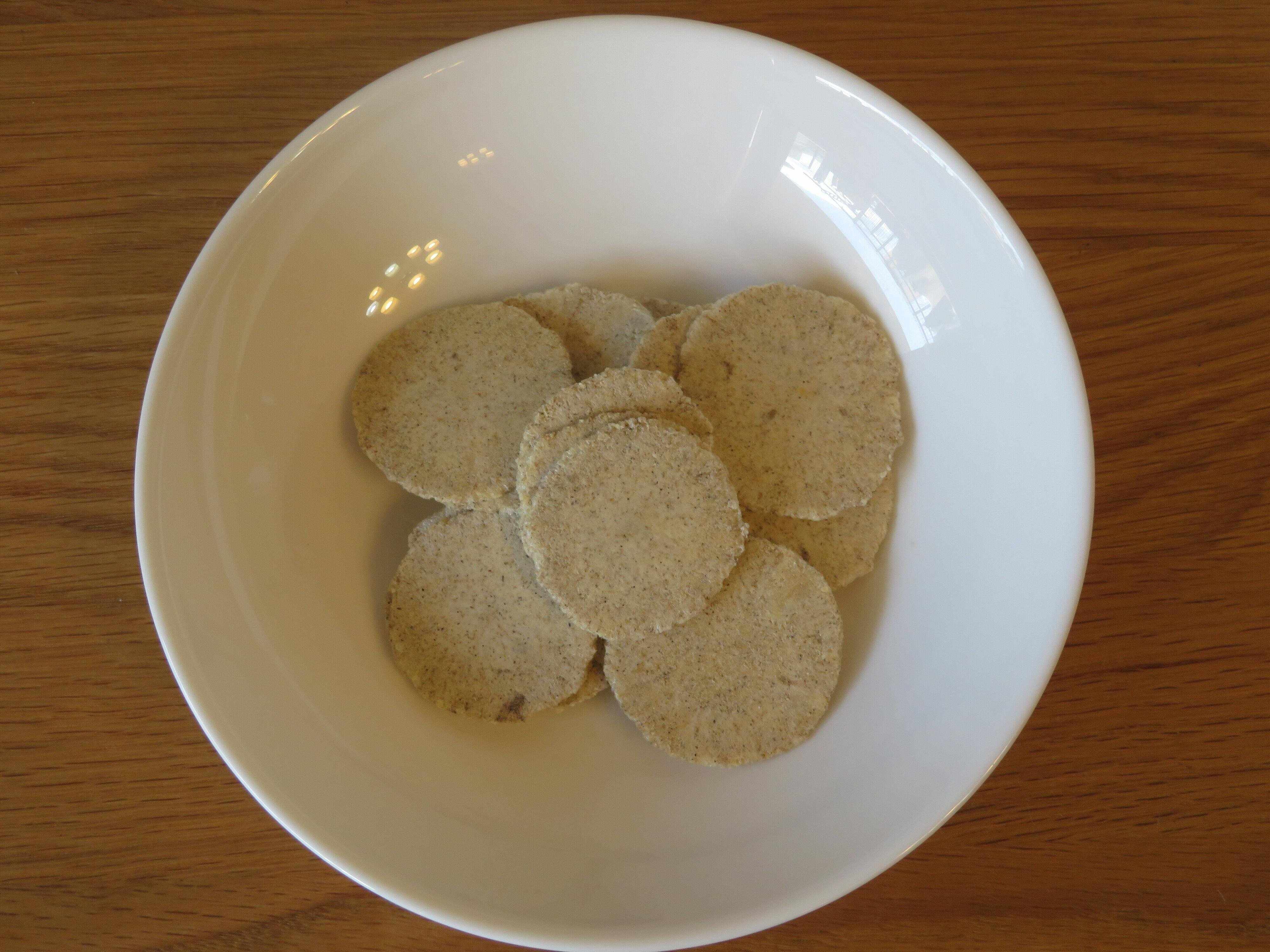 家族の大ブーイングのなか、さっそく食べてみます。袋を開けると、海鮮系せんべいのような磯の香り。「あれ、コオロギって陸の生き物だよね?」などと考えながら器に盛りました。