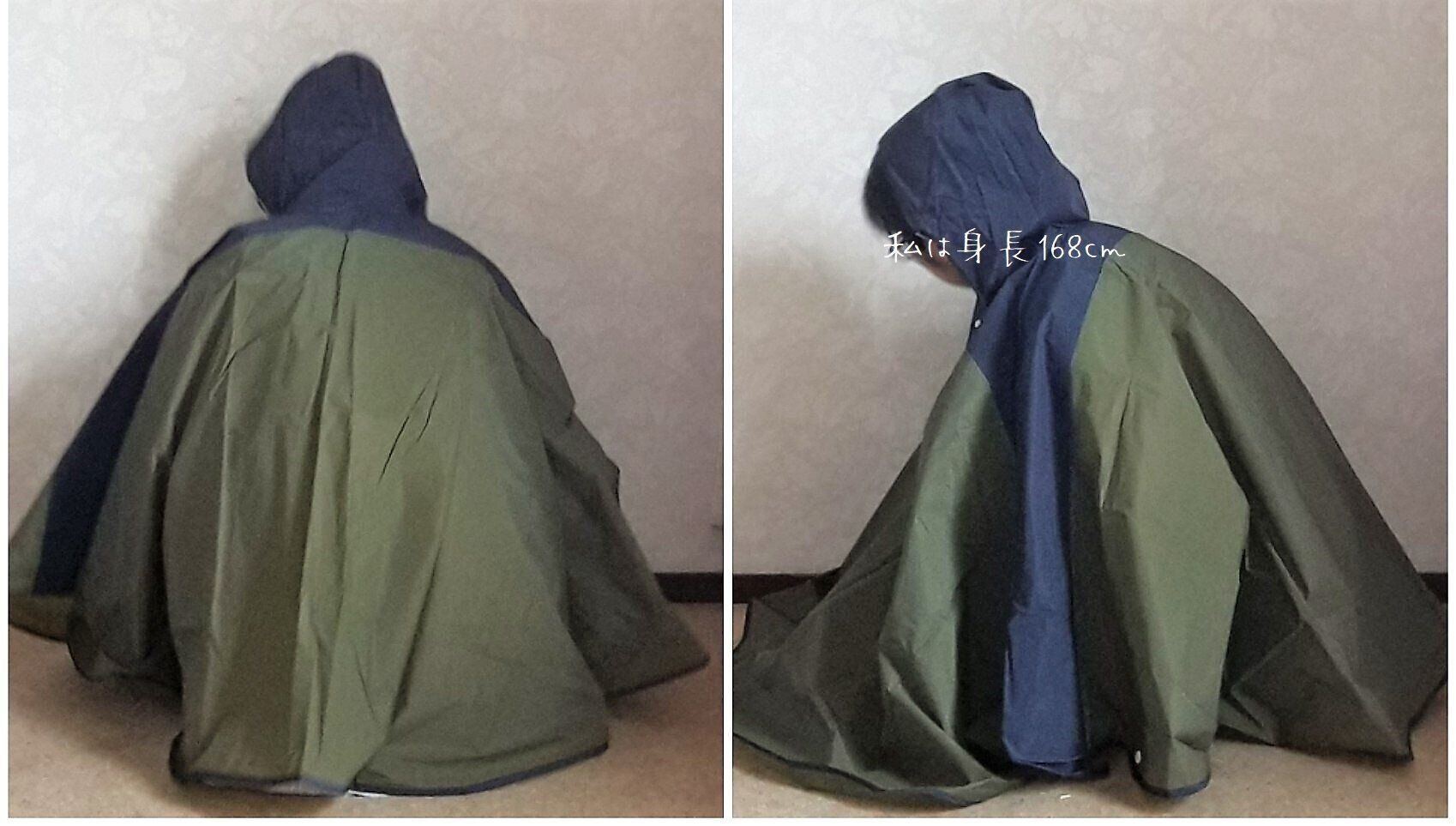 身長168cmの私が着ると、お尻が隠れる程度の長さしかないポンチョですが、おそろいのレインスカートを合わせて使えば、雨が降っても安心です。