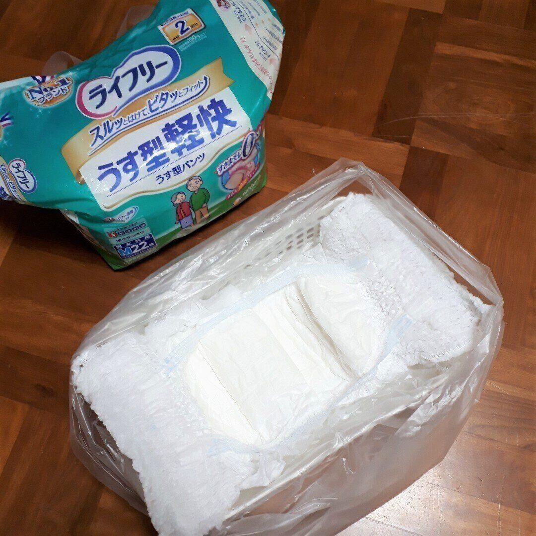 介護用オムツを開いてビニール袋に入れるだけです。※パンツ式の場合は、両サイドを破いて開いてください。(ペット用シーツや赤ちゃん用おむつでも大丈夫です)