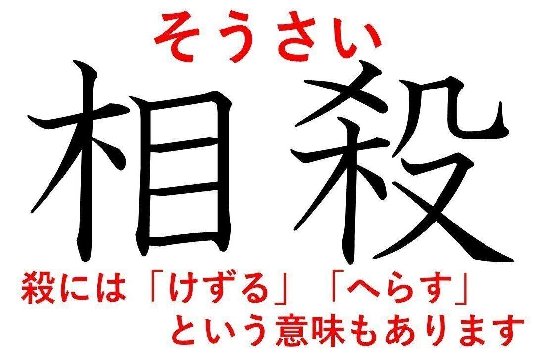 「殺」という字が入っているため穏やかでない印象を受けますが、「双方から同じ程度の力をぶつけあって打ち消しあう」という意味の言葉です。