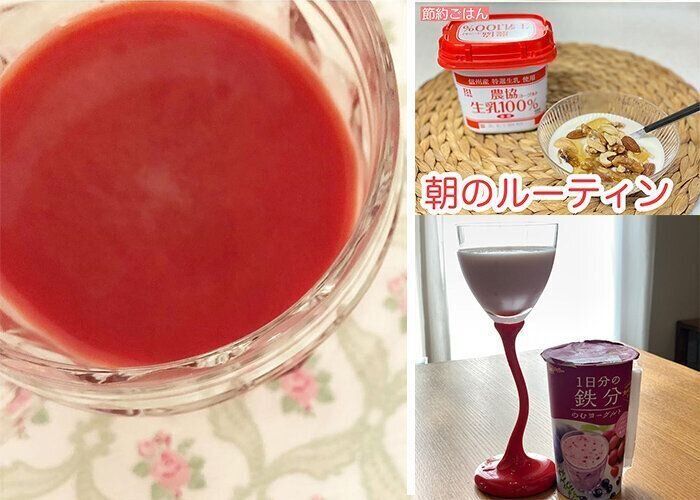 「鉄は体内に吸収されにくいので、食べ物からこまめに取りたい栄養素。『1日分の鉄分のむヨーグルト』は、プルーン・アサイー・クランベリー・赤ぶどうが入っていて、女性にうれしい栄養素が手軽にとれるのはもちろん、ヨーグルトドリンクだからさわやかでおいしい! 朝食やランチのお供にぜひ♪」
