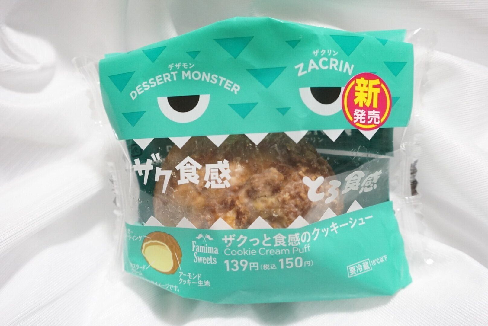 ファミリーマートで発売されている「デザートモンスター」。通称「デザモン」は、食感に特徴があるワンハンドタイプのデザートです。そんなデザモンから「ザクっと食感のクッキーシュー」が発売されました。「ザクリン」というモンスターを早速見つけたので、ご紹介します。