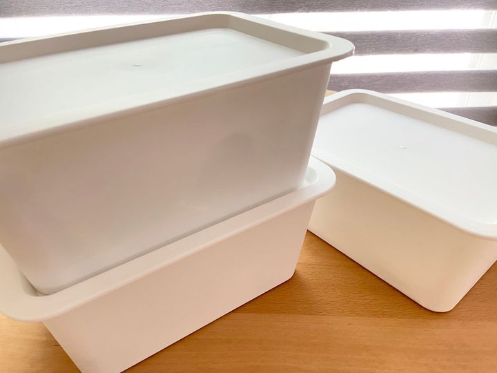 見えないと忘れてしまうので、中身の見える、高さの低い、色はクリアか半透明の収納グッズがオススメです。もし白がよい場合は、高さは低いもの、高さのあるものがよい場合は、半透明かクリアのもの、と組み合わせて使ってみてくださいね。