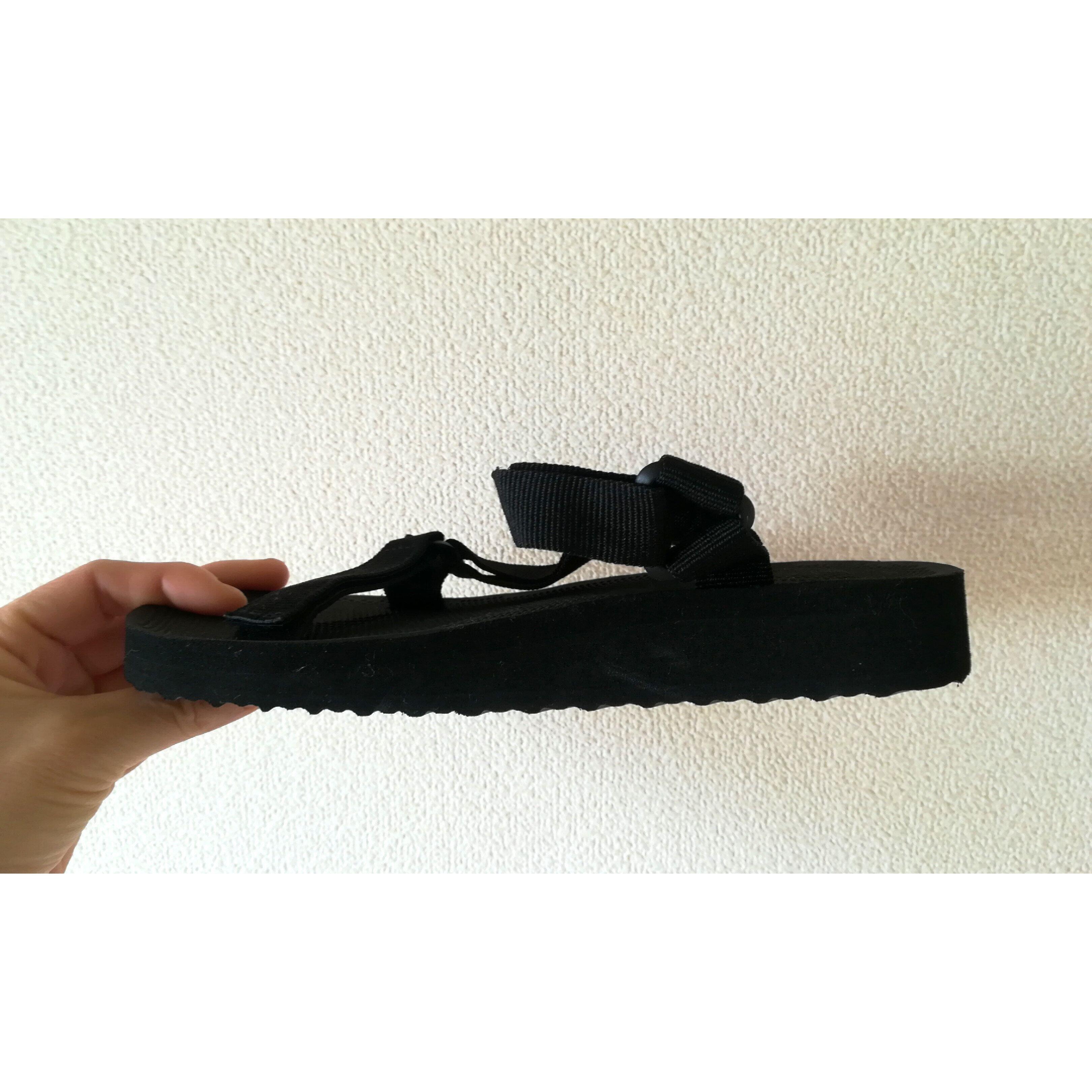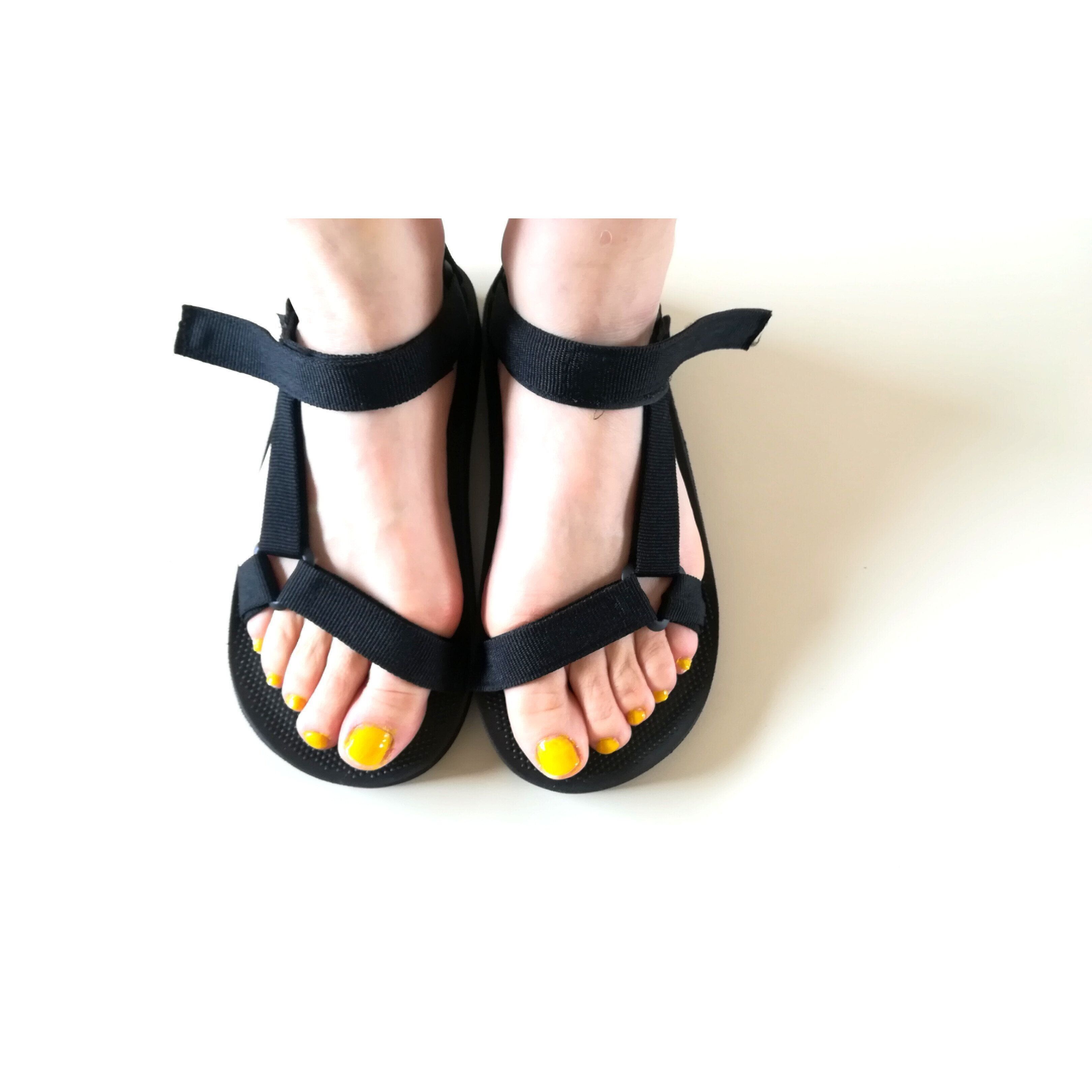 素材はビーサンみたいだから、雨の日でも大丈夫そう。履き心地もフワフワ。すっごく軽くって量ってみたら、片足で約85g!軽ッ!ふだん24cmを履いてますが、マジックテープだからぴったりに調整できます。マジックテープが当たる部分も柔らかいからストレスない感じです。