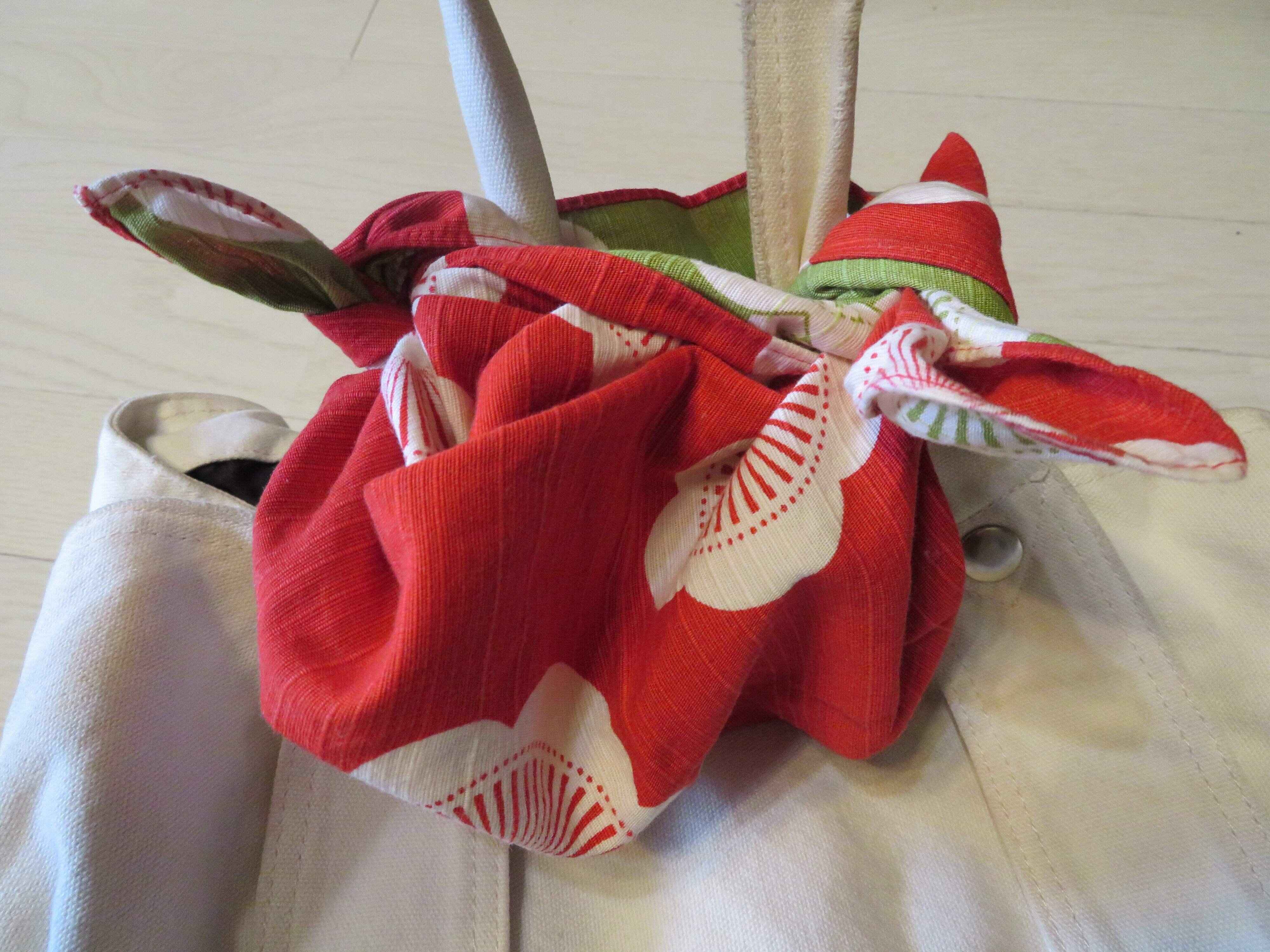 ふだんは手ぬぐいをバッグの飾りにしておいて、必要があれば袋になるようつけかえるのなら楽なはず。