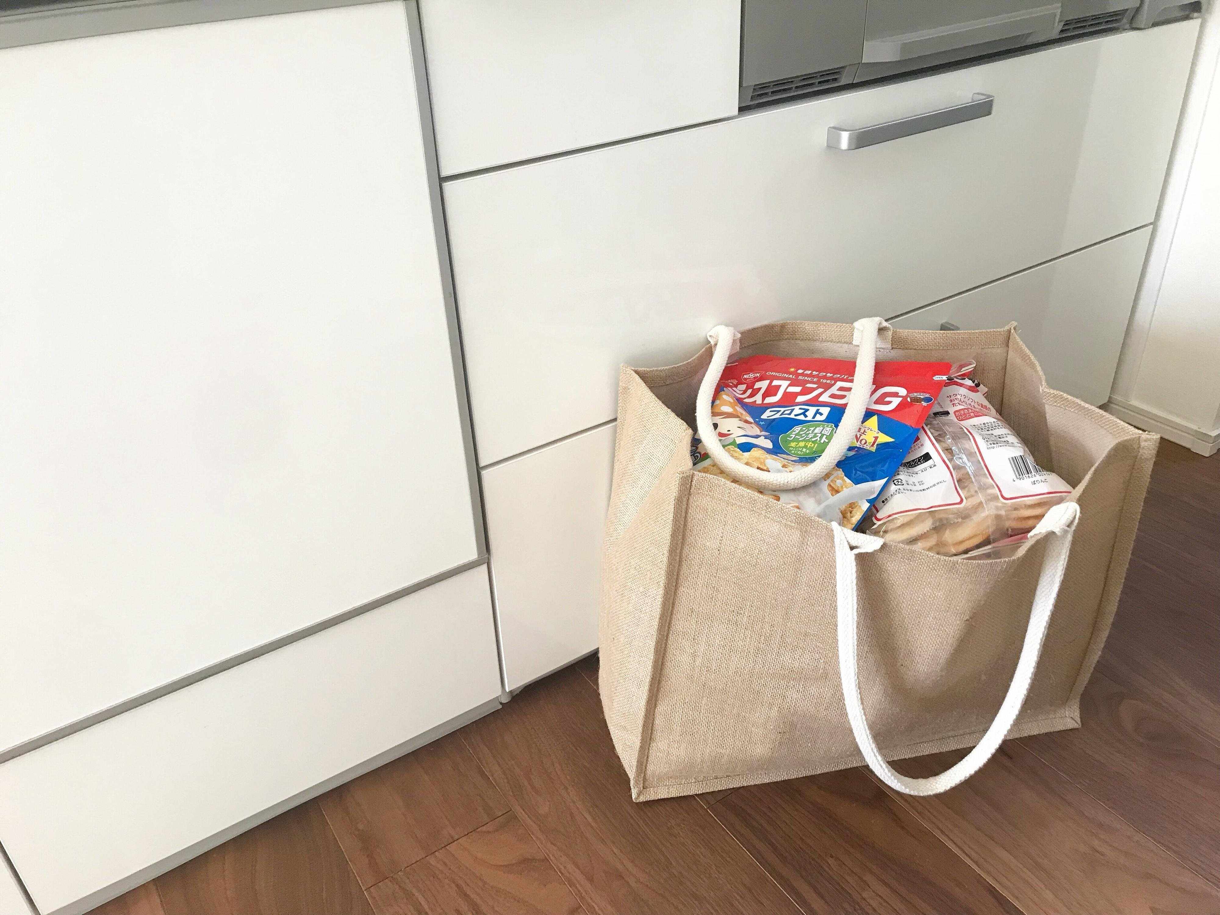 A3サイズだと、スーパーのレジカゴいっぱいに買い物しても入る大きさです。トイレットペーパーやティシュペーパーなど、かさ張るものもすっぽり♪