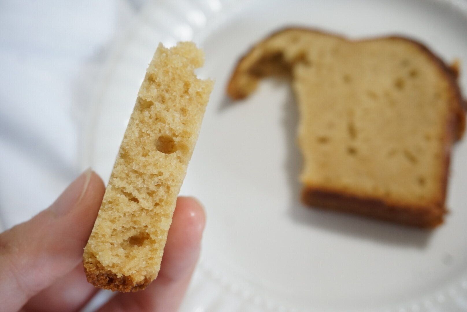 パウンド生地はしっとりと柔らかく、優しく持たないと崩れるので注意。