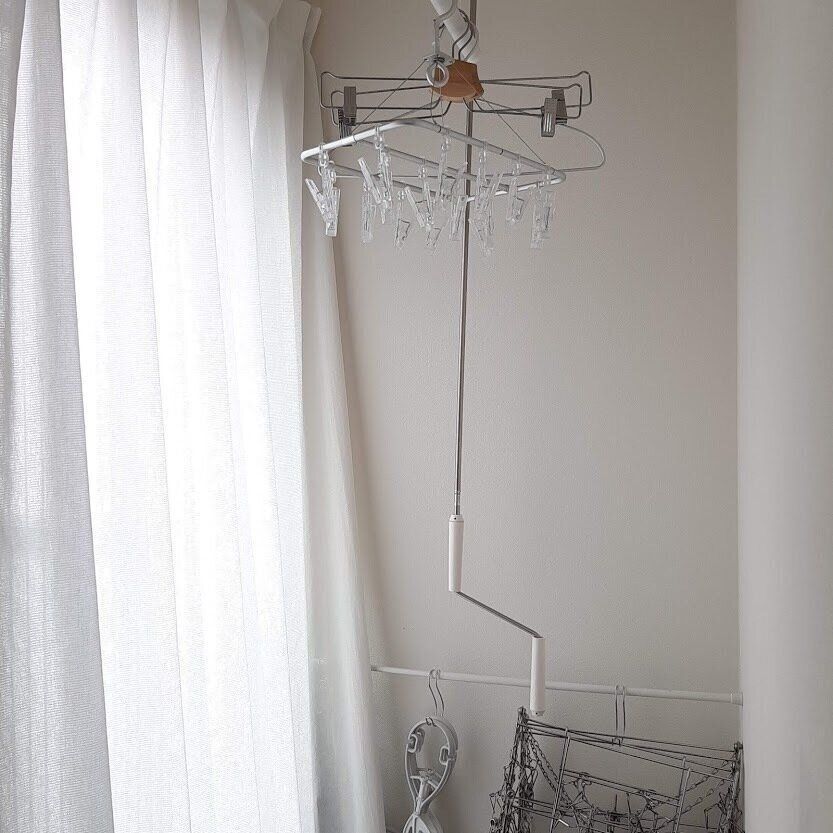 但し床置きはナシ。突っ張り棒を設置して吊るしたり、そのまま室内の物干しにかけっぱなしにしています。床置きを減らすだけで掃除のしやすさが格段にアップします。