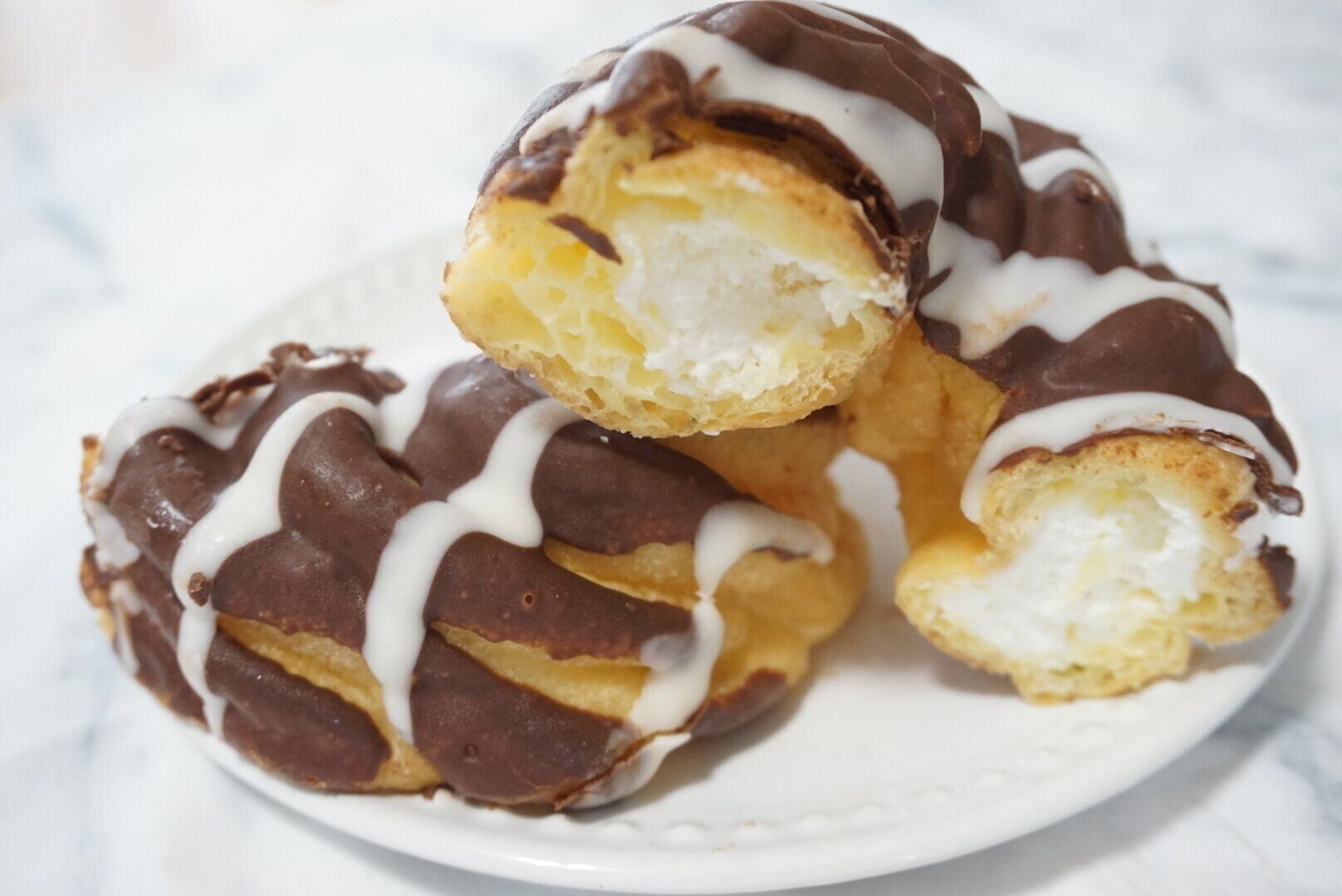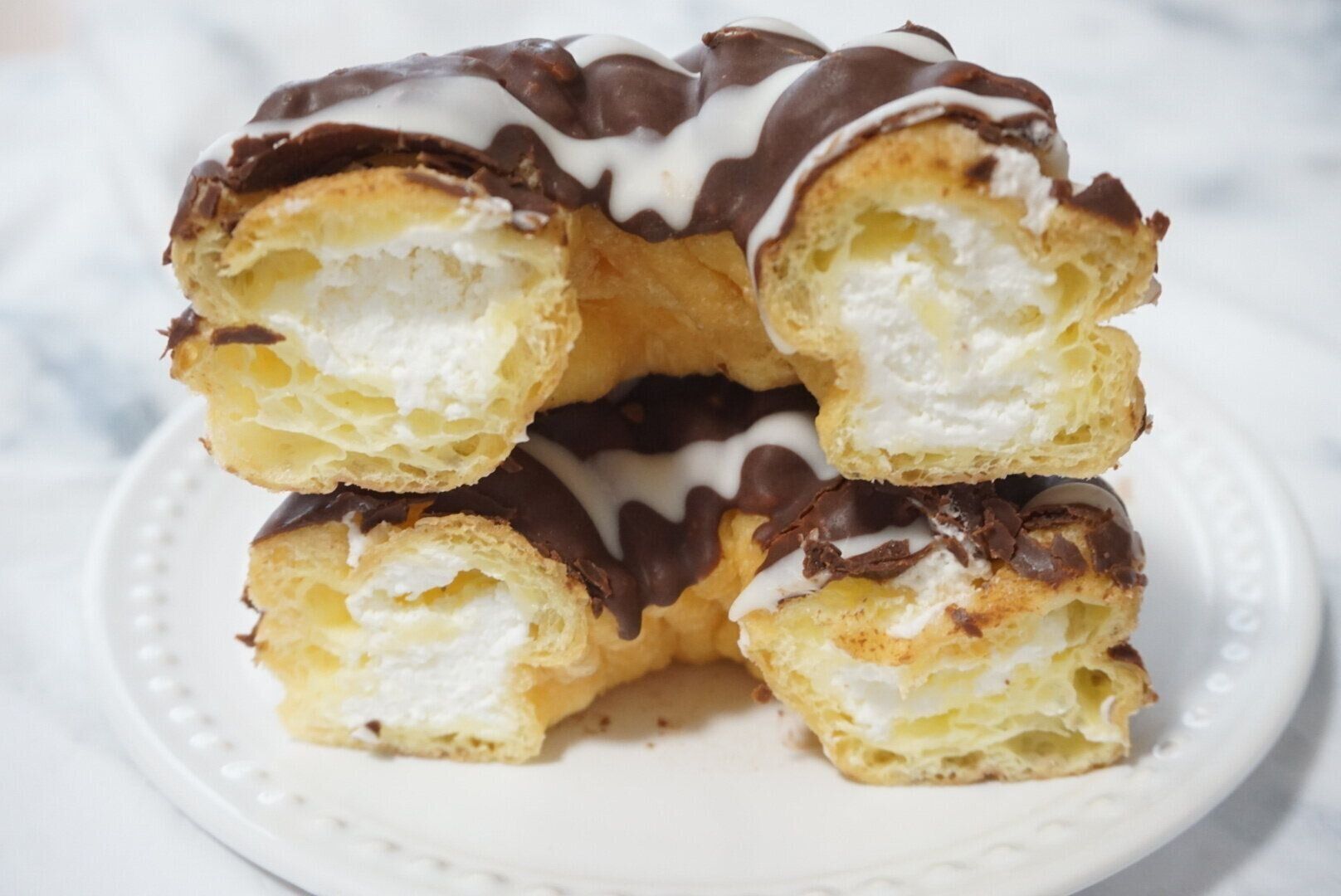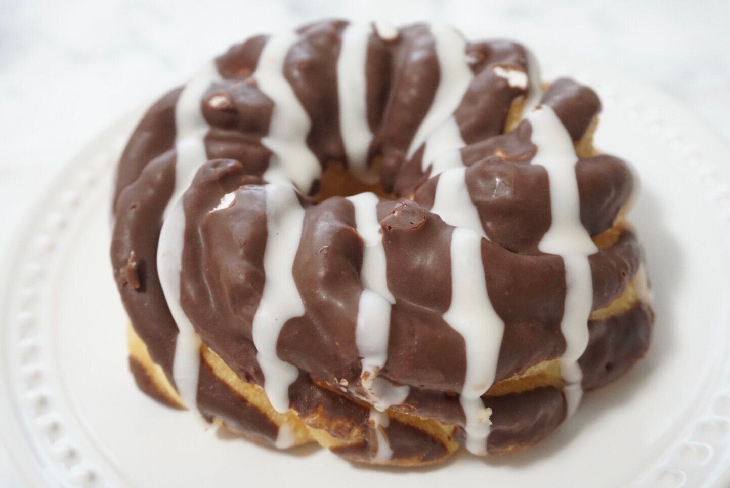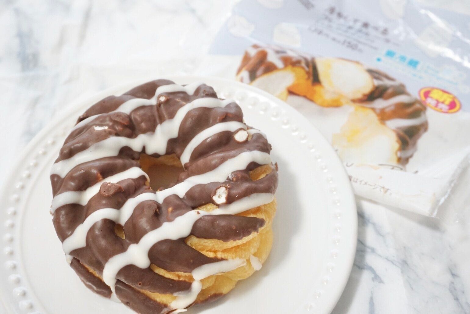 ミルクチョコとホワイトチョコがけの生地がなんともおしゃれですね。