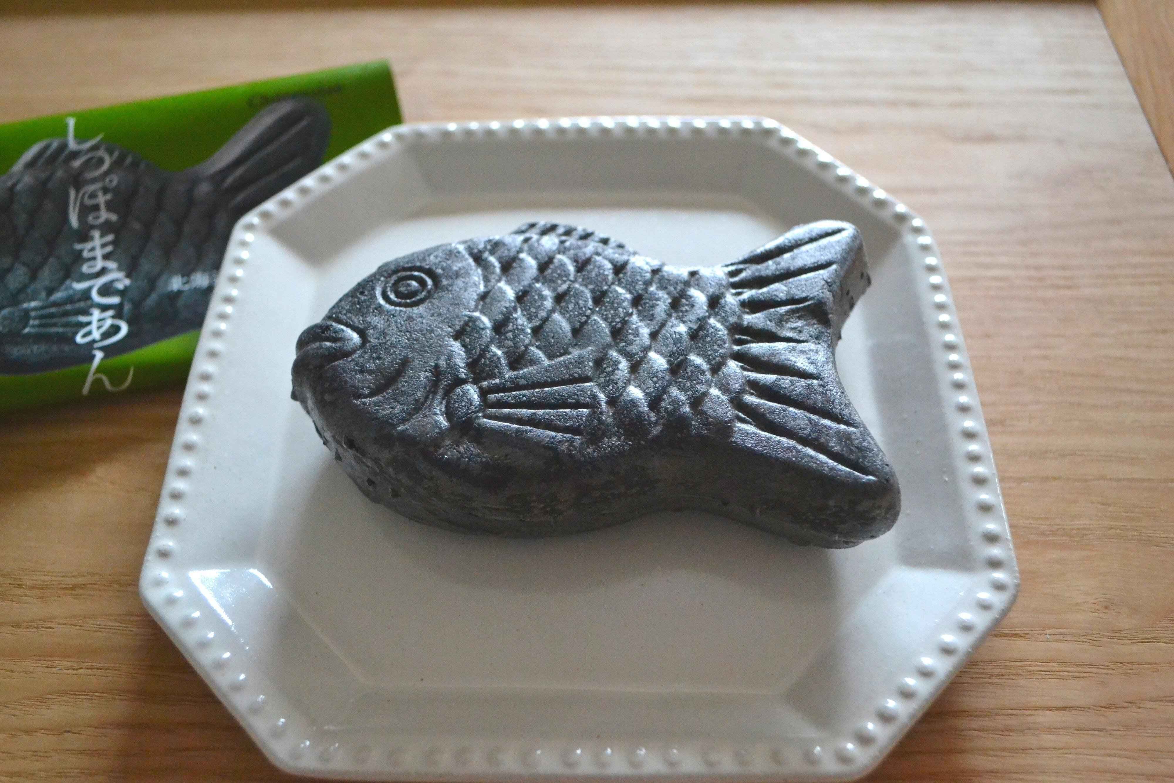 竹炭入りの真っ黒なたい焼き最中で包まれています。