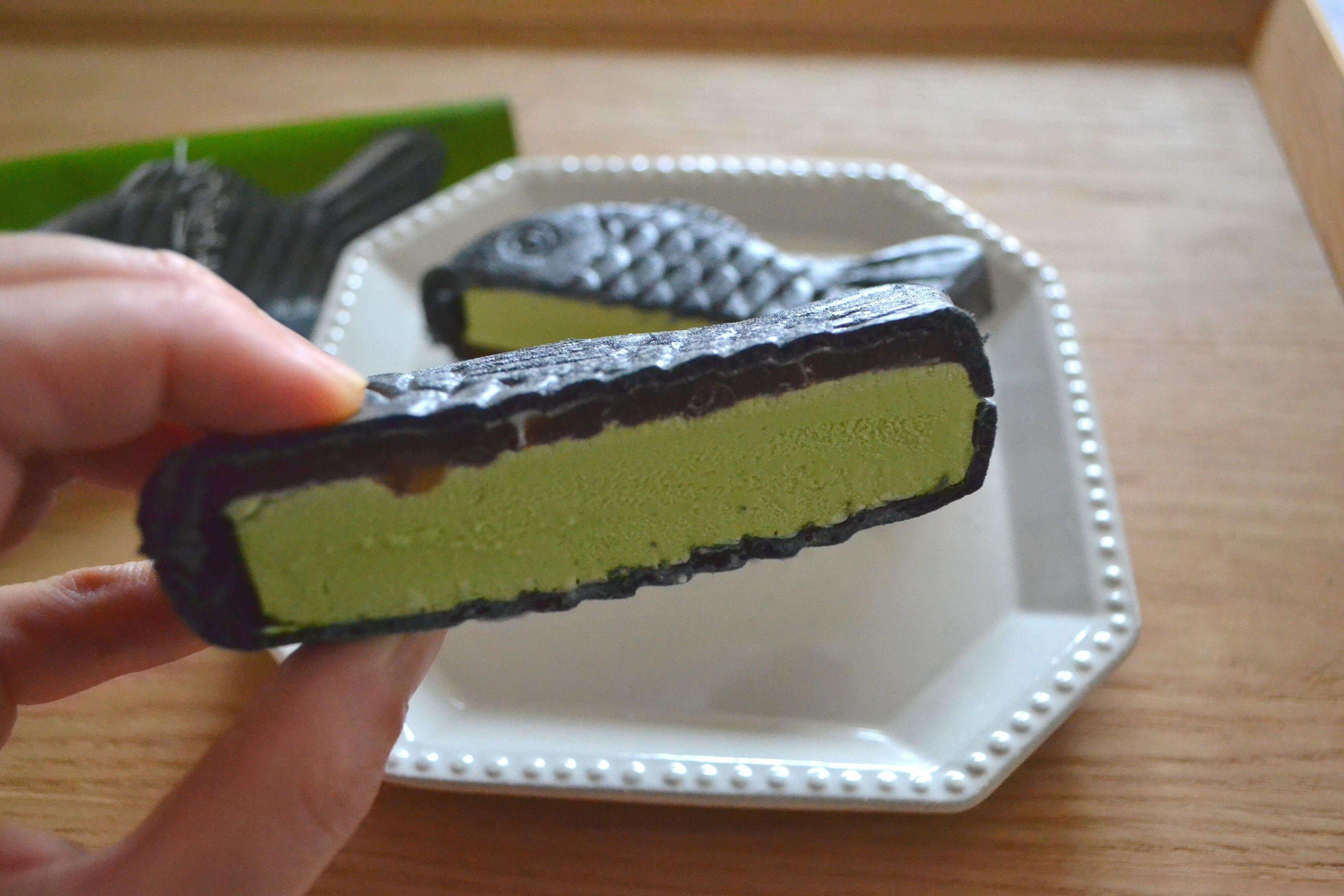 中は抹茶アイスと黒蜜風味粒餡がサンドされています。