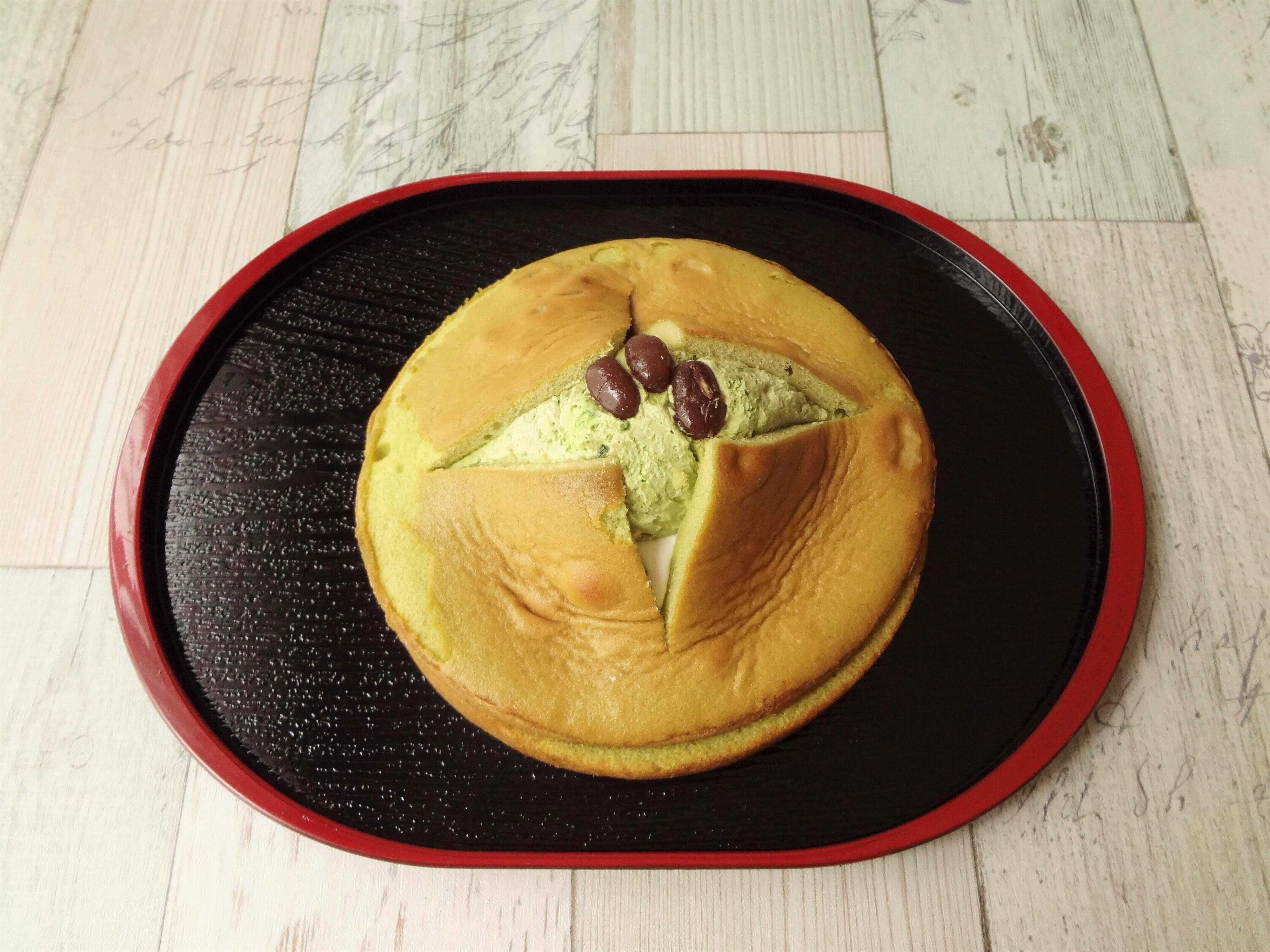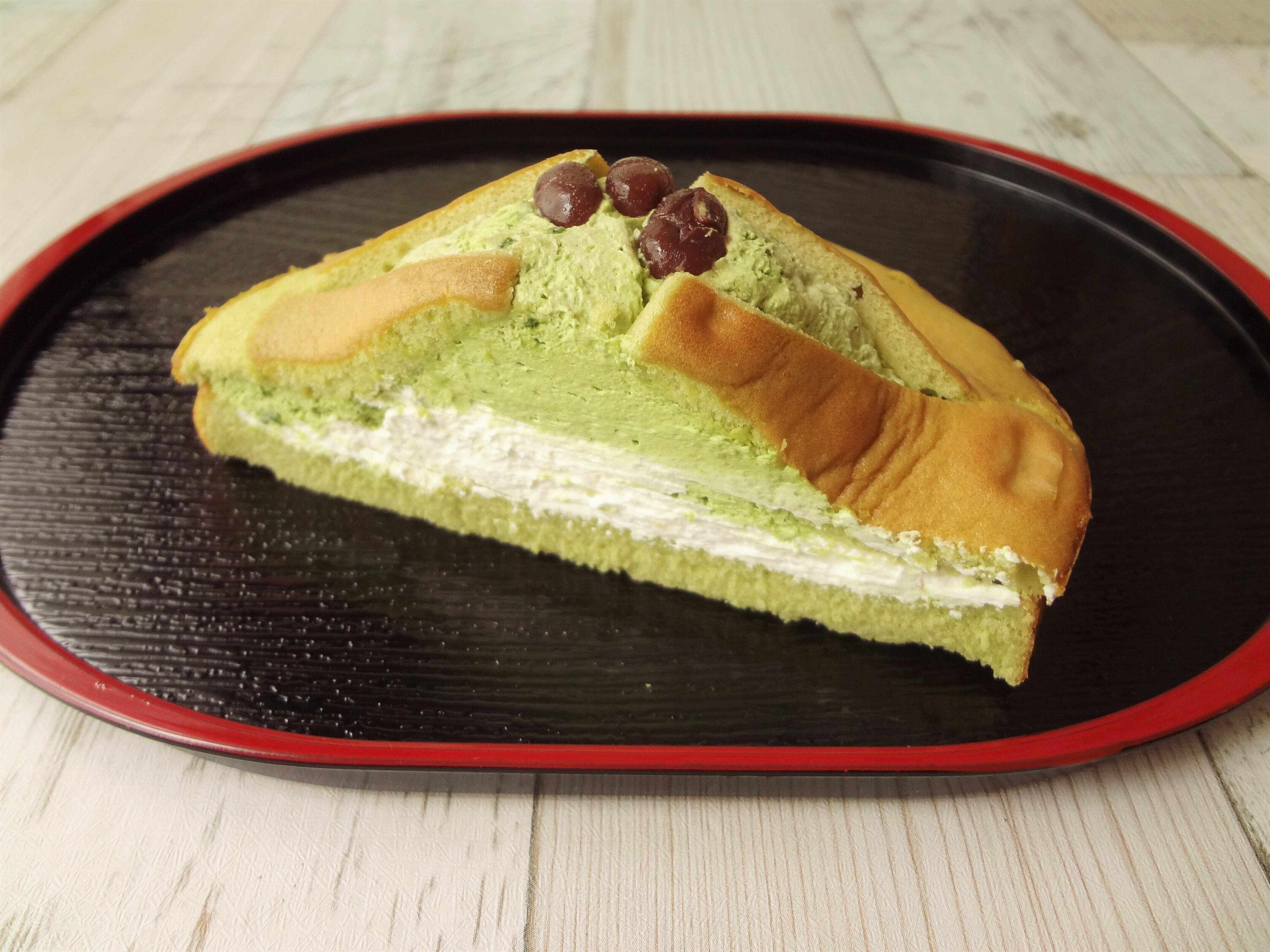 スポンジ生地にも抹茶が練り込んであるので、色鮮やかな緑色で抹茶の香りがしっかりするので、スポンジ生地だけでも美味しいです。