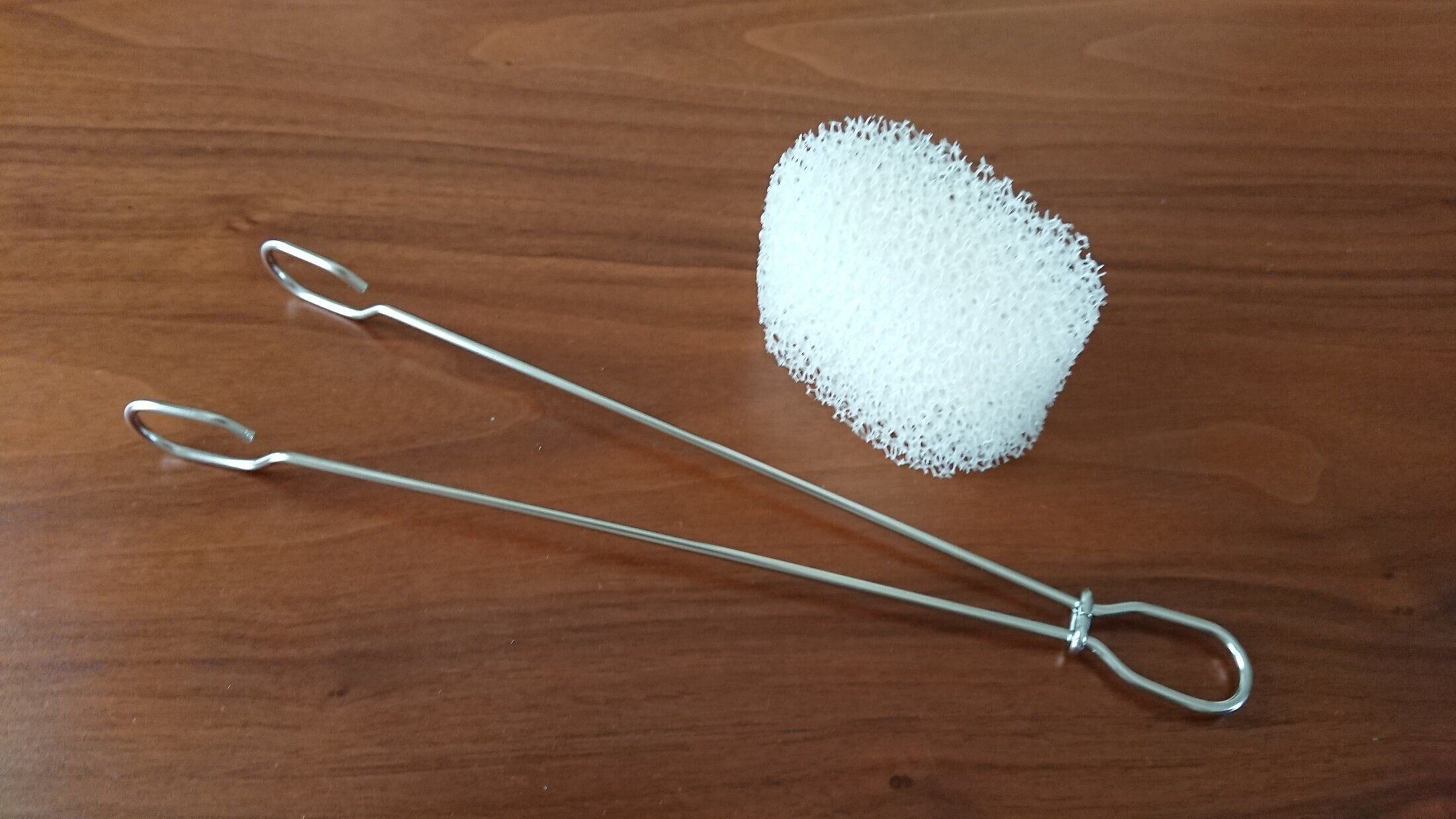 今回ご紹介する無印良品の「柄つきスポンジ」(税込790円)は、柄の部分のサイズが27.5cm、スポンジ部分の幅が約6cm×奥行き9cmとなっています。柄の部分はステンレス製で強度も強く、真っ白なスポンジは、目が粗めなので、汚れもしっかり取れます。