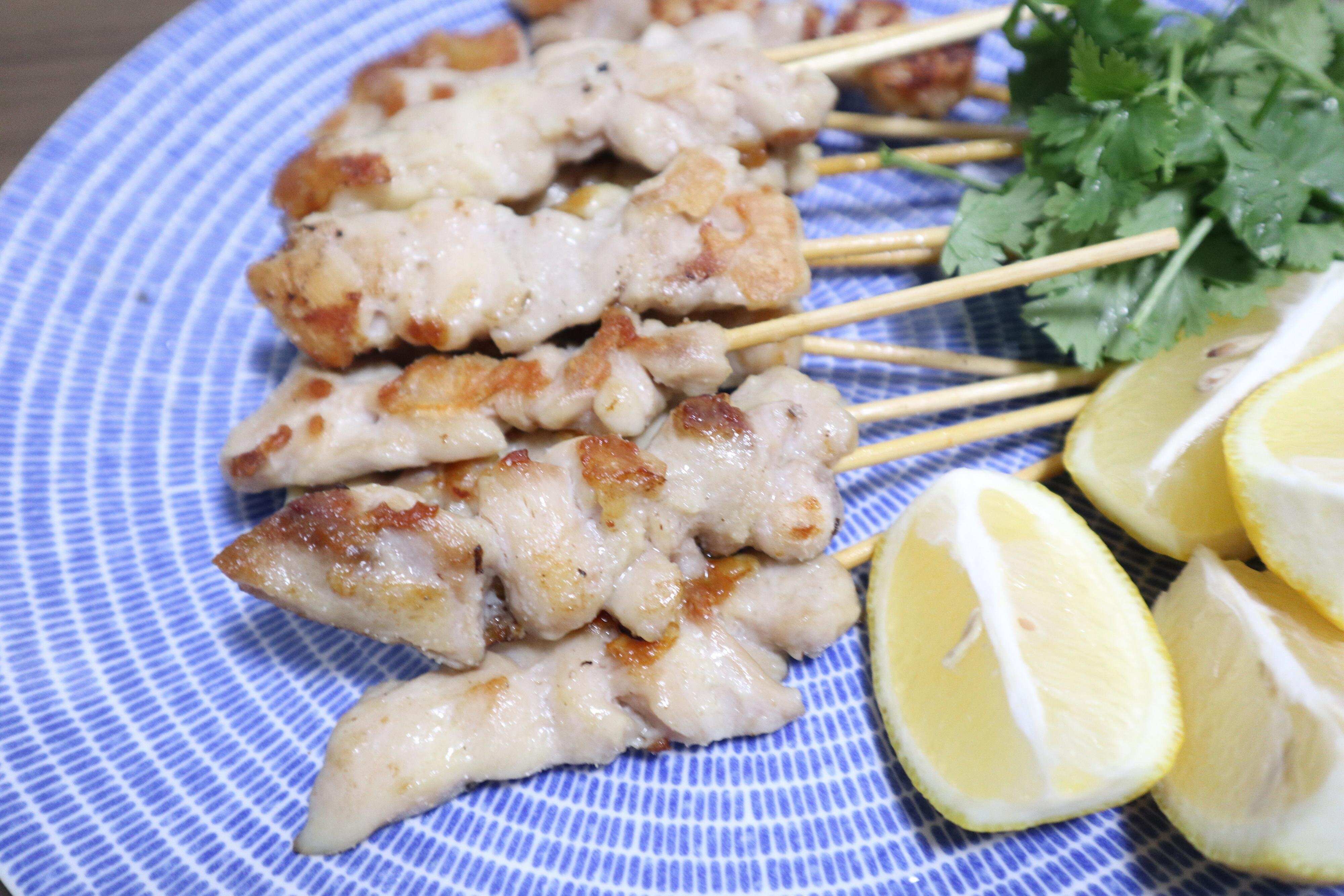 さっぱり食べたい大人におすすめなのが、塩レモン。塩こしょうで味つけした焼きとりにレモンを絞って食べます。お好みでパクチーもいっしょに。
