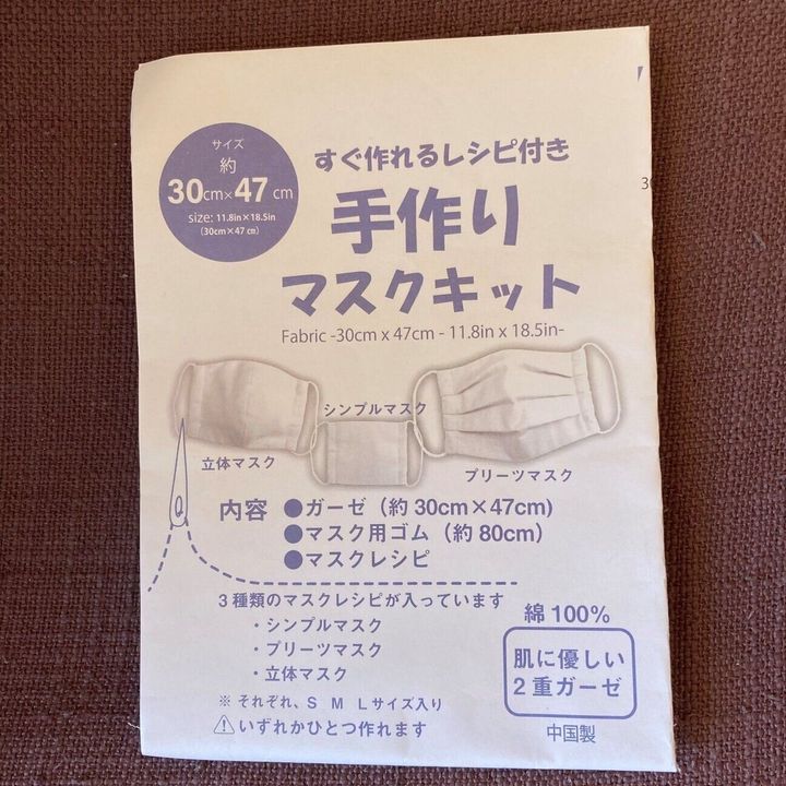 どうしても市販のマスクが合わないというかたは、自作してみるのはいかがでしょうか。ダイソーの「手づくりマスクキット」はシンプルに、ガーゼ・マスク用ゴム・マスクレシピの3点セット。
