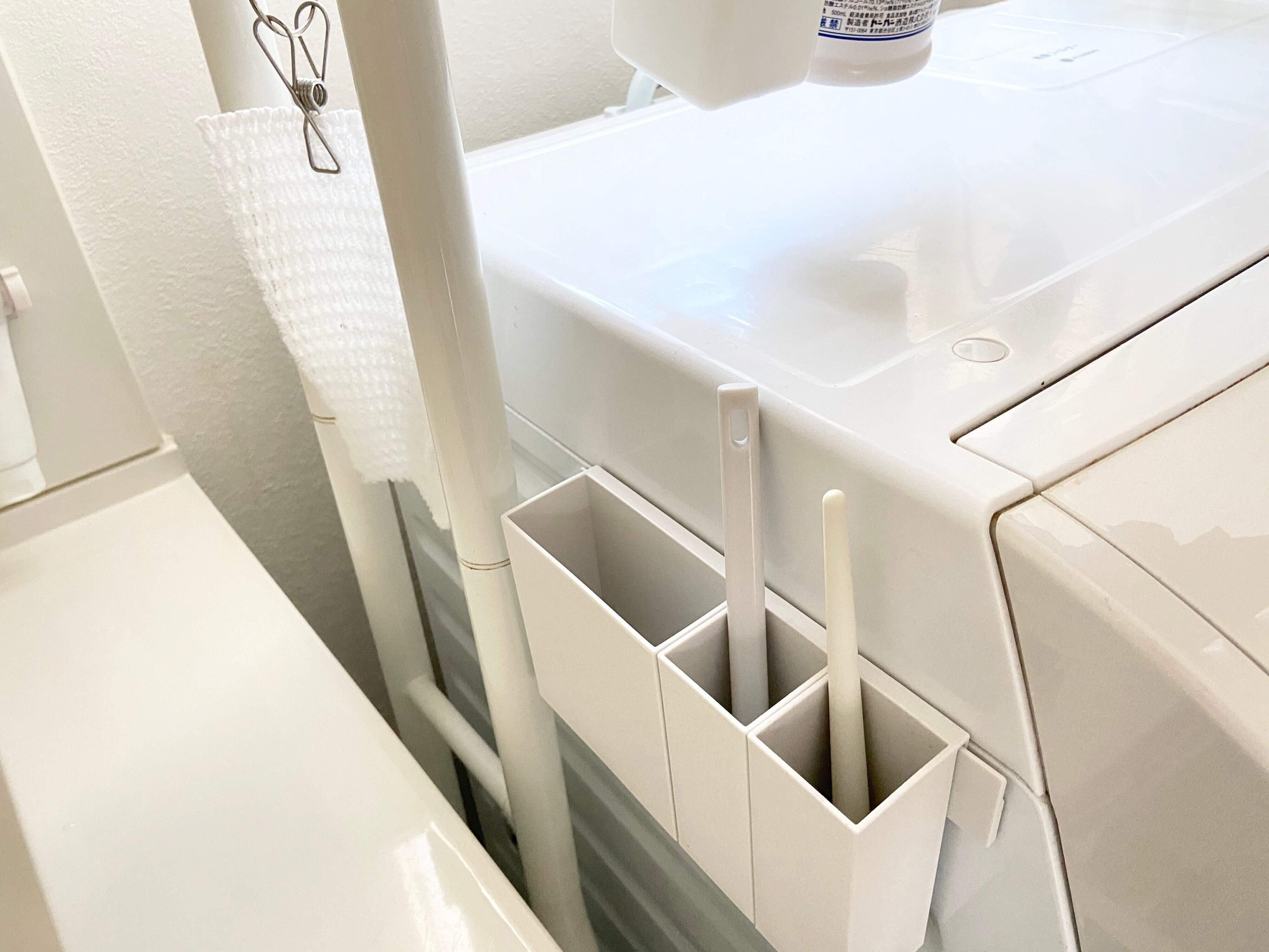 ほかにもマグネットバーがあれば、冷蔵庫や洗濯機にもくっつけられるので、よく使うキッチン用品や掃除用品などを収納しておくのにもオススメです。
