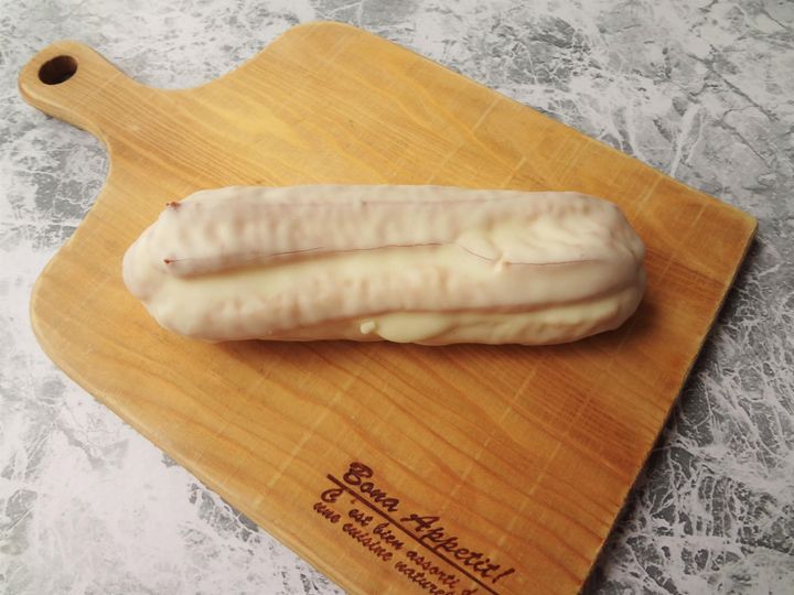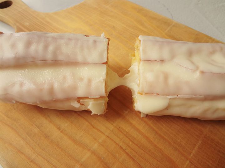 エクレアにホワイトチョコレートがコーティングしてあり、中には真っ白なミルククリームがたっぷり入っています。