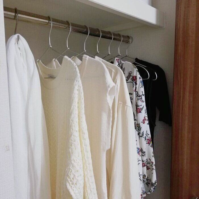 以前はものを捨てられず、200着あった洋服。気付けばオールシーズンの私服は30着ほどになっていました。その内夏服は日焼け対策の長袖も含め、12着で着回しています。洋服選びの自分なりの基準が確立すると、買う時も手放す時も迷いにくくなりました。