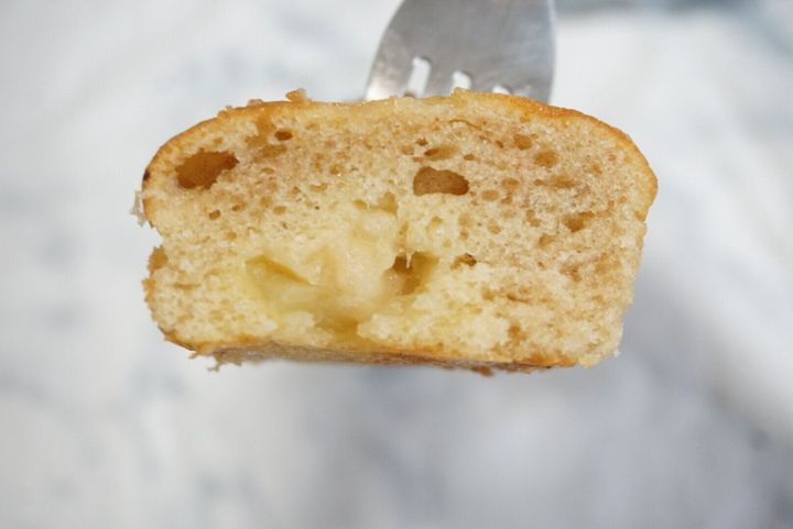 半分に切ったときは気づきませんでしたが、食べていたらシャリッとしたりんごが入っていて甘味が広がり存在感あって嬉しいサプライズ。