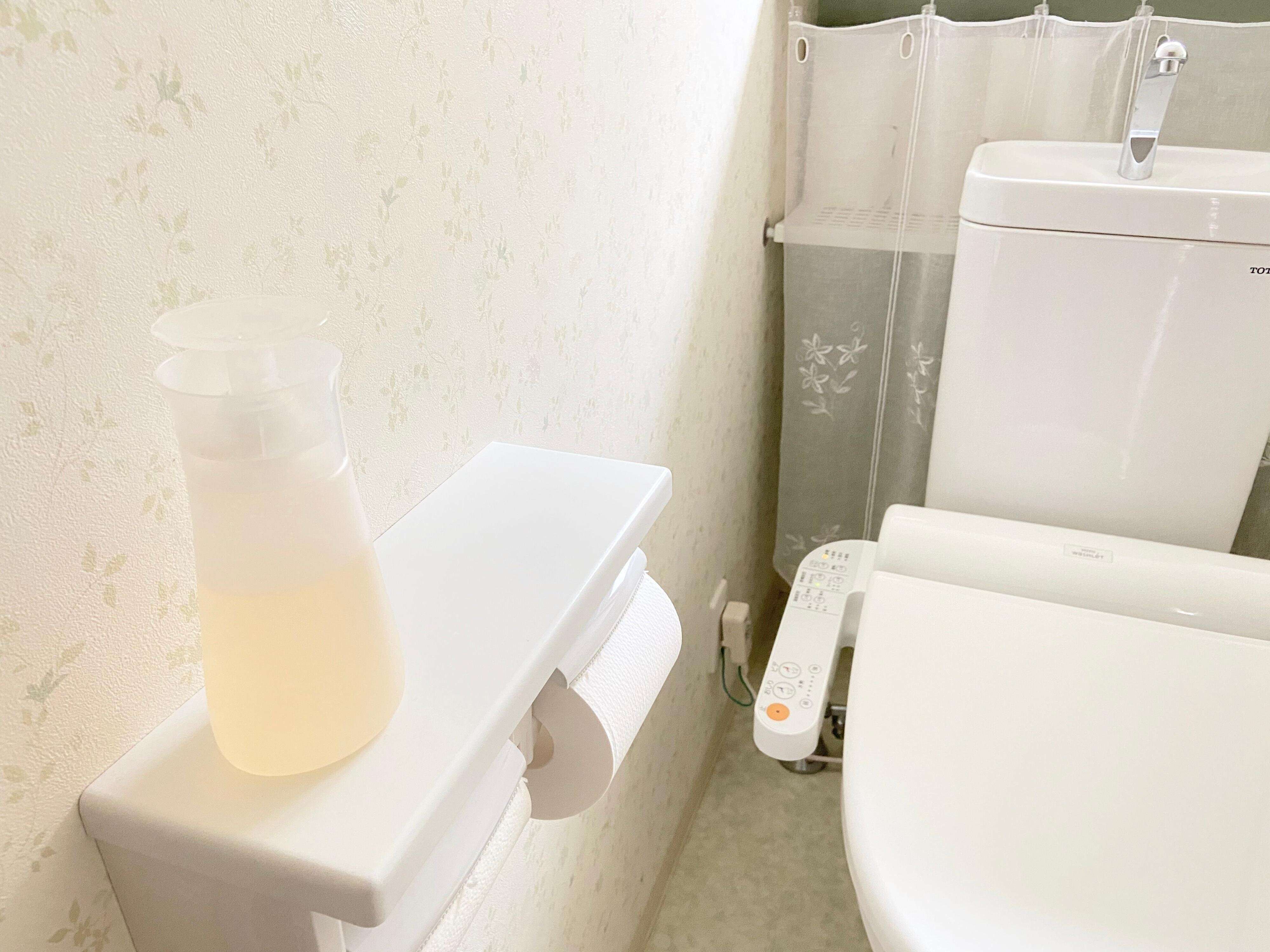 トイレ掃除は3日に1回くらいだったのを土曜の1回に。飛び散りやスポットの汚れには都度対応できるように、除菌用にパストリーゼを1階と2階の両方のトイレにセットしています。