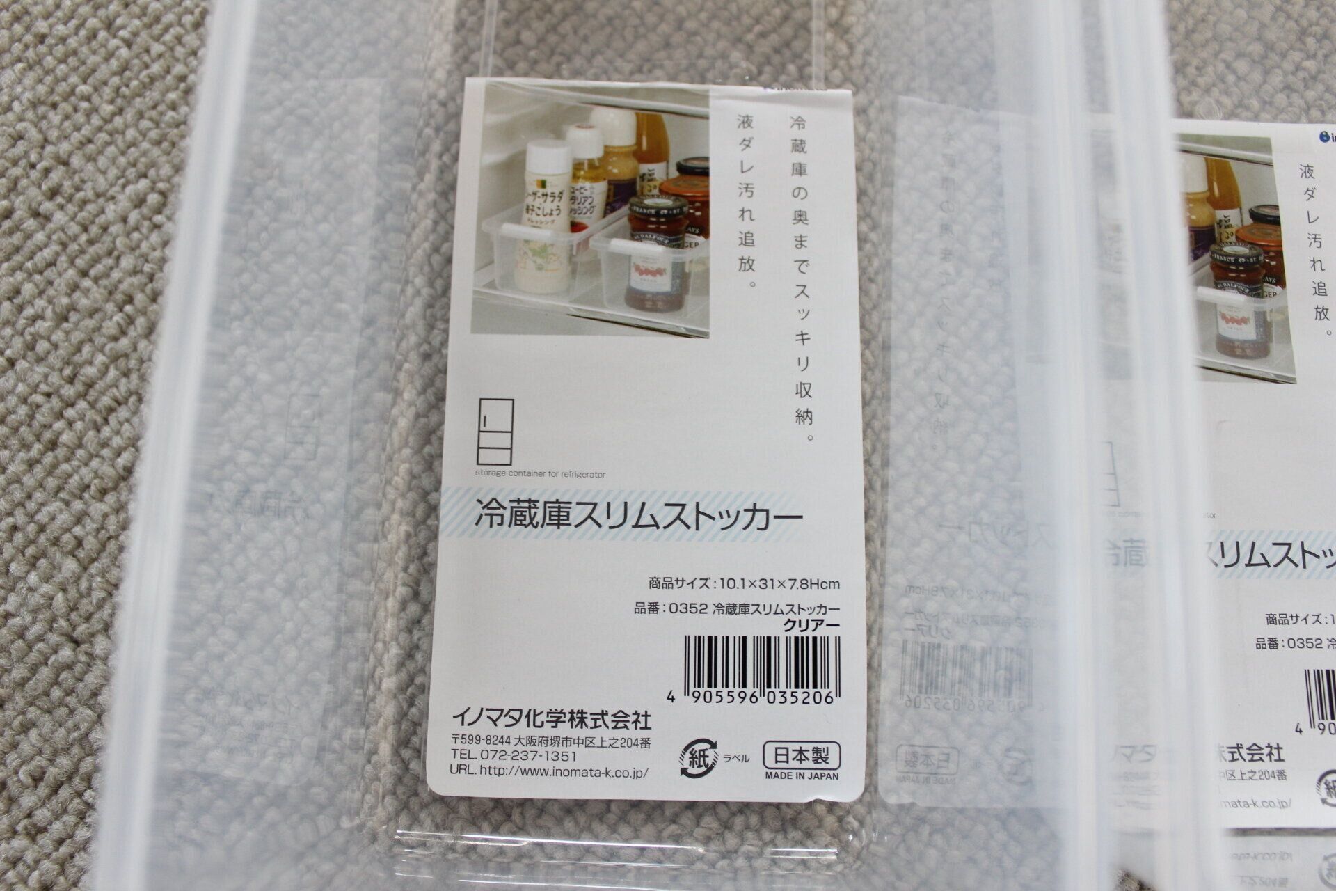 冷蔵庫のポケット部分にキレイ ストッカー スモール、正面にキレイ ストッカー スリムを使用。