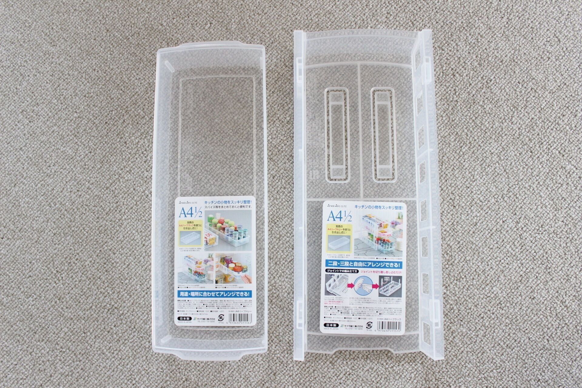 ▽左がA4ハーフトレー 幅117×奥行338×高さ47mm