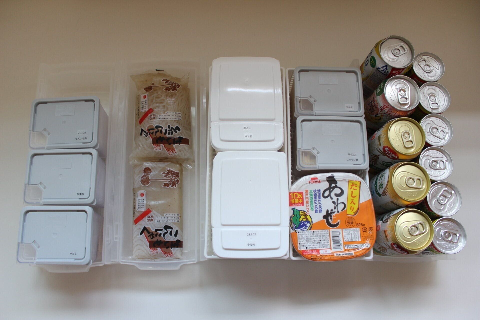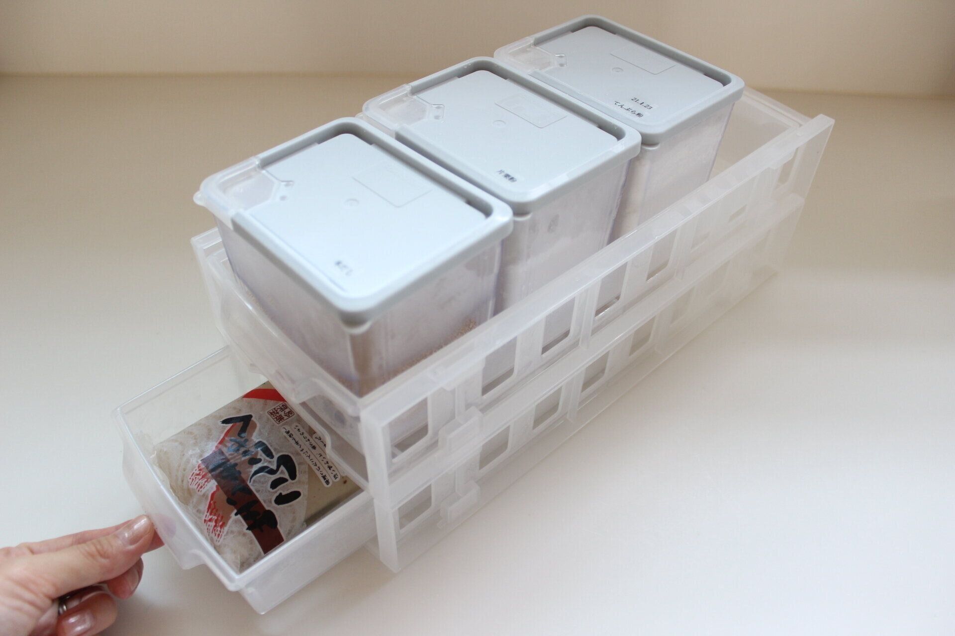 ▽必ずストックしているこんにゃく、糸こんにゃく、粉類を収納
