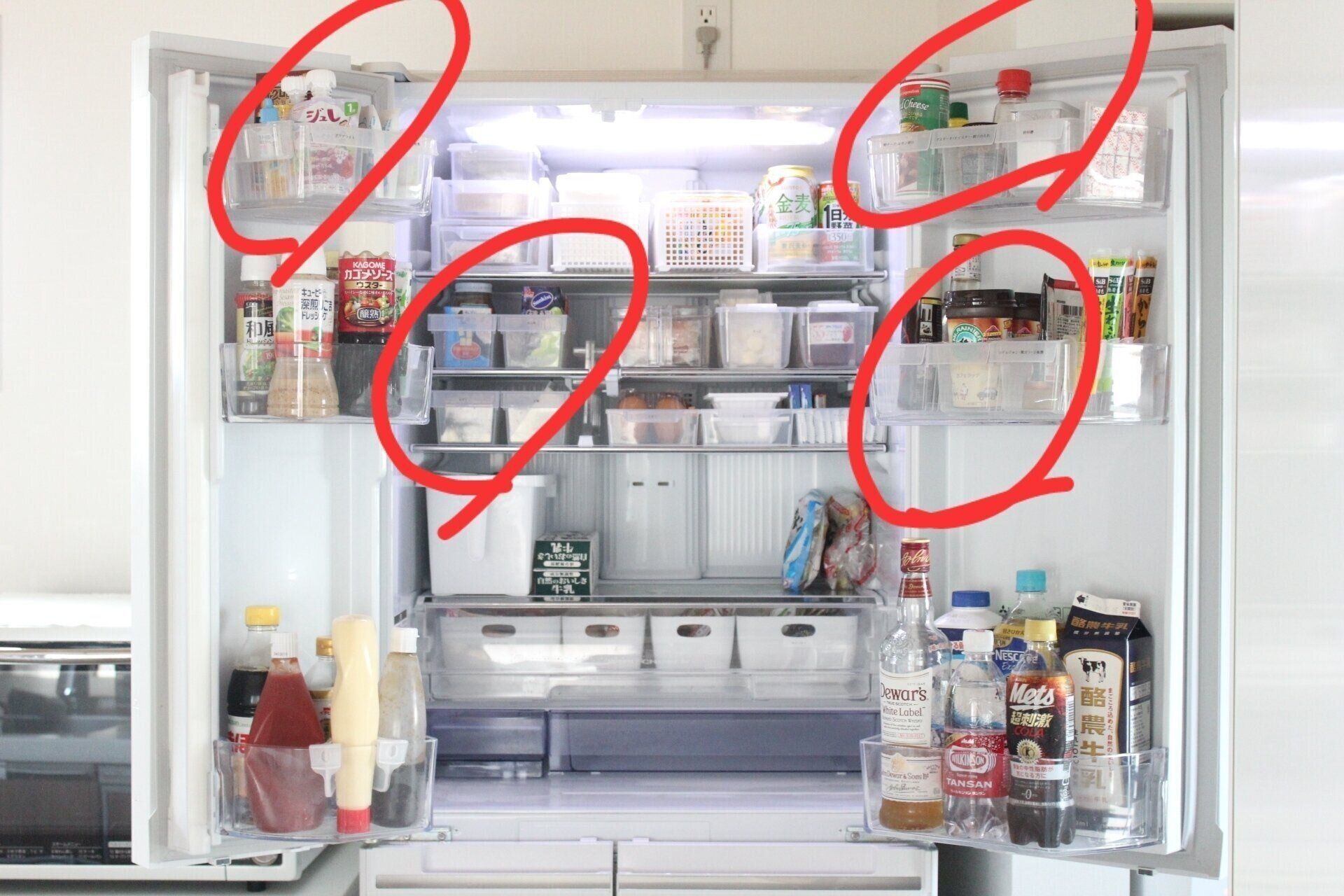 場所が決まっていると取り出すときの時短にもなります。冷蔵庫の収納に悩んでいるかたの参考になれば幸いです。