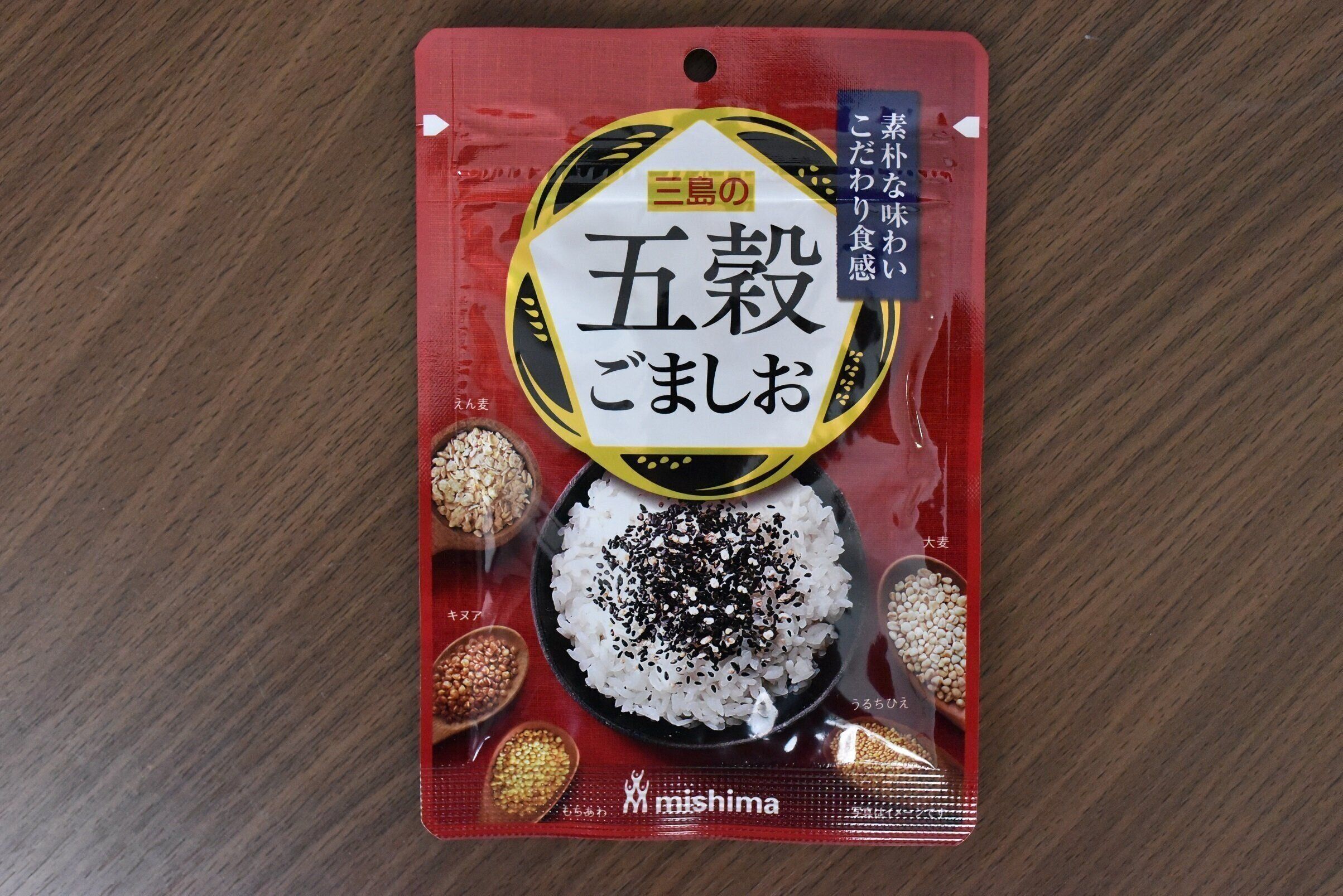 炊き立てごはんにふつうのゴマ塩を書けただけでもおいしいのに、ダイソーで販売されているのは、五穀入りのごましおです。