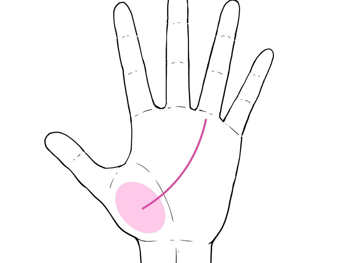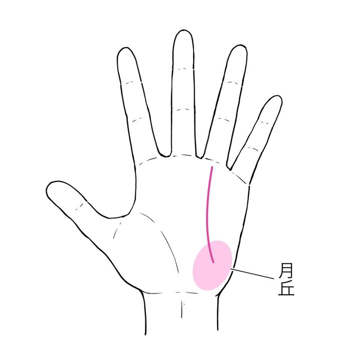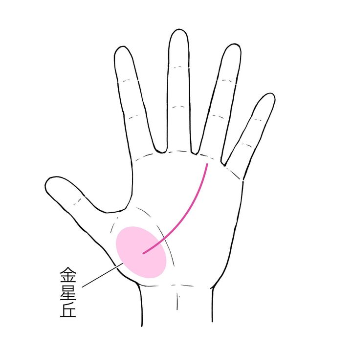 金星丘(親指の付け根の膨らんだ部分)から小指へ向かう線があったら、音楽やデザイン、美術、工芸品など、芸術の分野の仕事で成功しやすいタイプです。芸術的なものだけでなく、ネイルやメイク、服やテーブルのコーディネートなどとも相性◎。