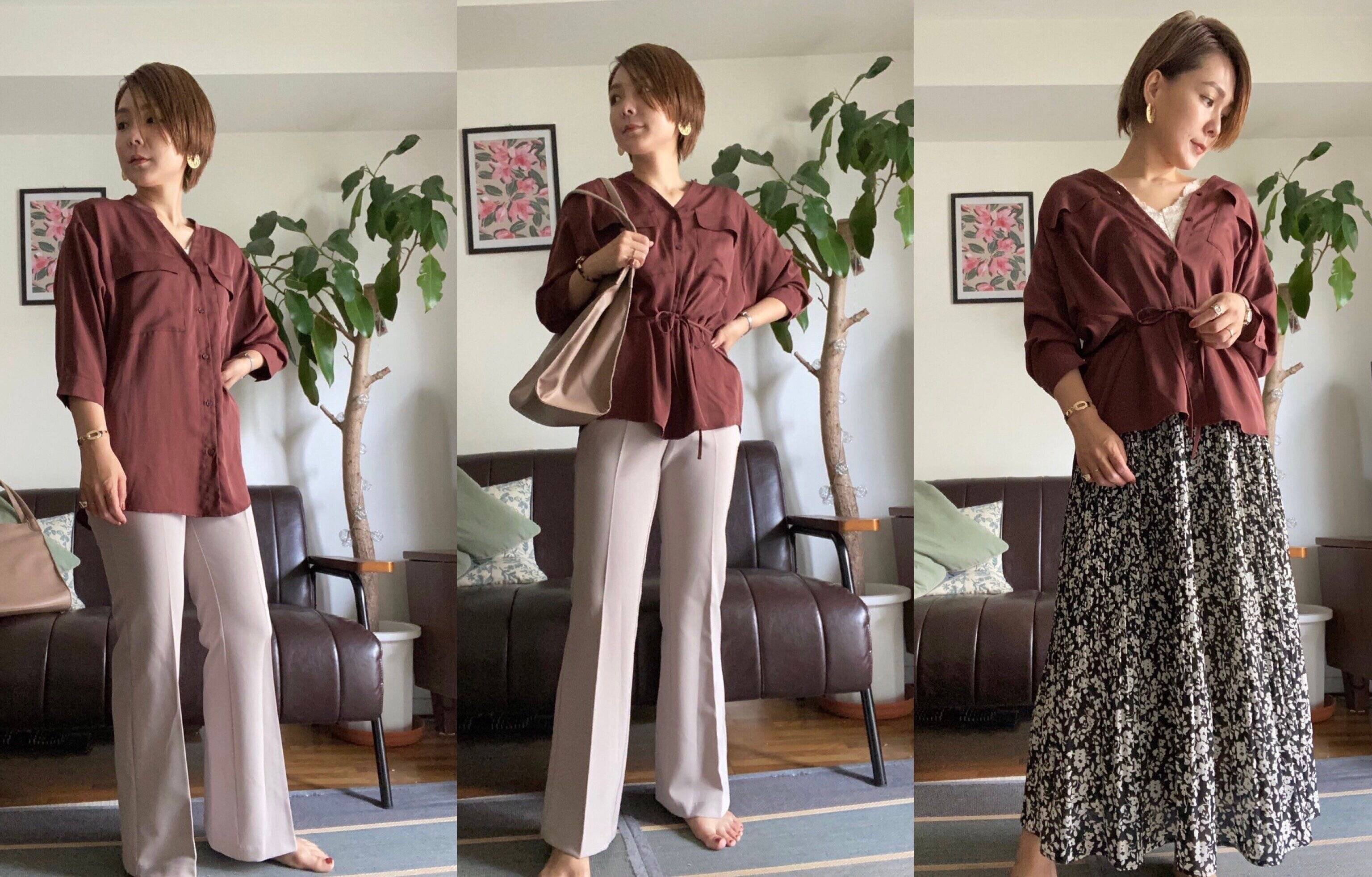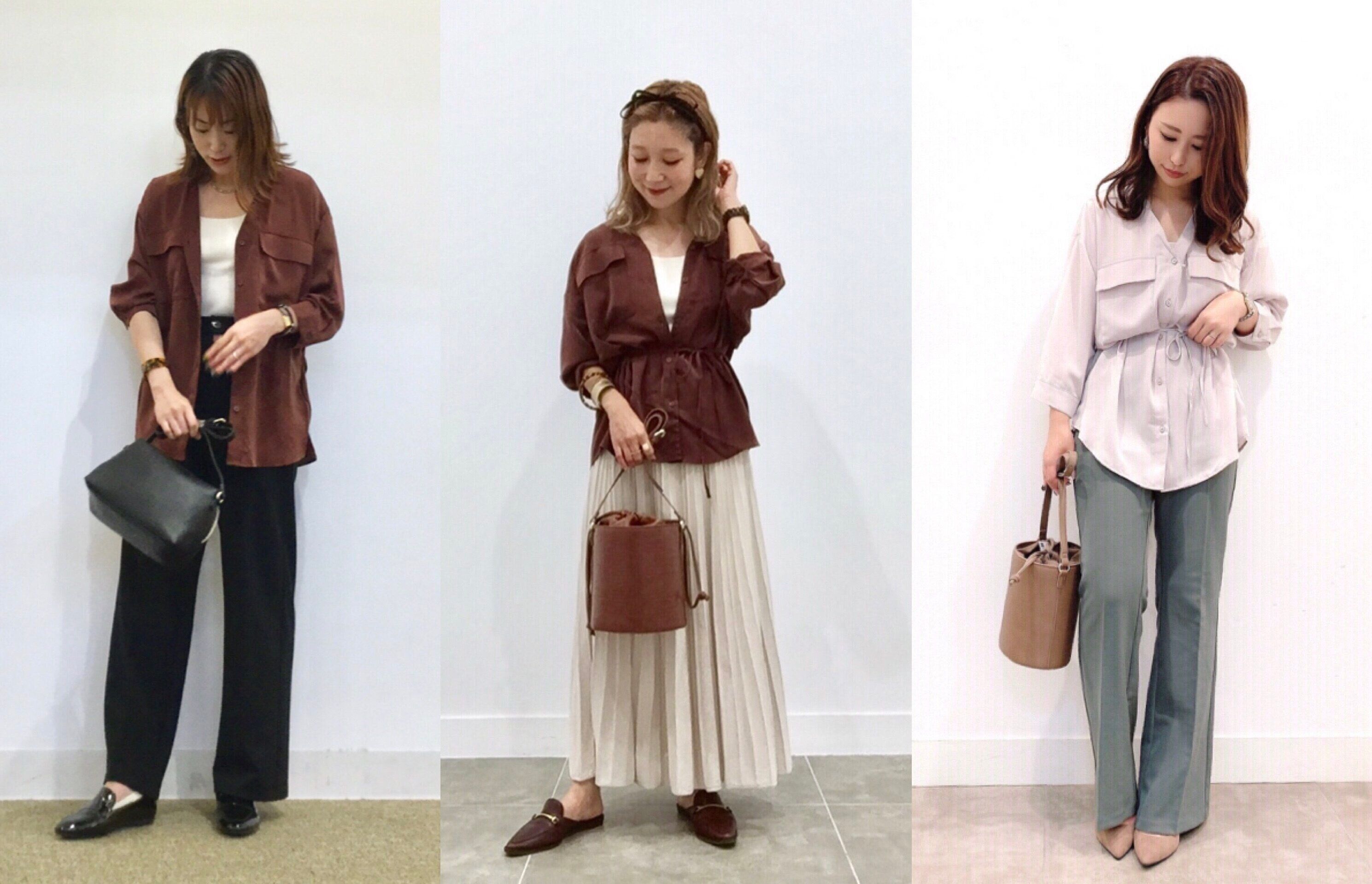 5~6)着回し力抜群!高見え素材のサテン素材のシャツコーデ!