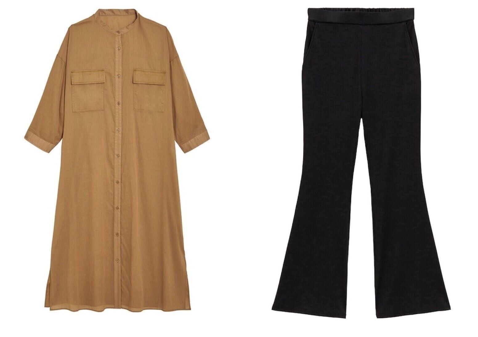 トレンドのフレアシルエットが女性らしいパンツです。カットソーリブ素材なので快適なフィッティングを実現。ワンピースやチュニックの下に重ねてもかわいらしく、着まわしバリエーションが広がる1本です。(GUプレス橋本さん)