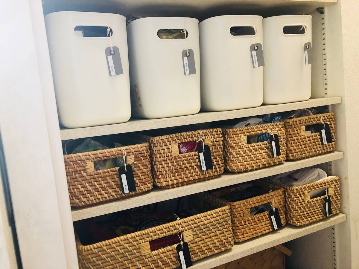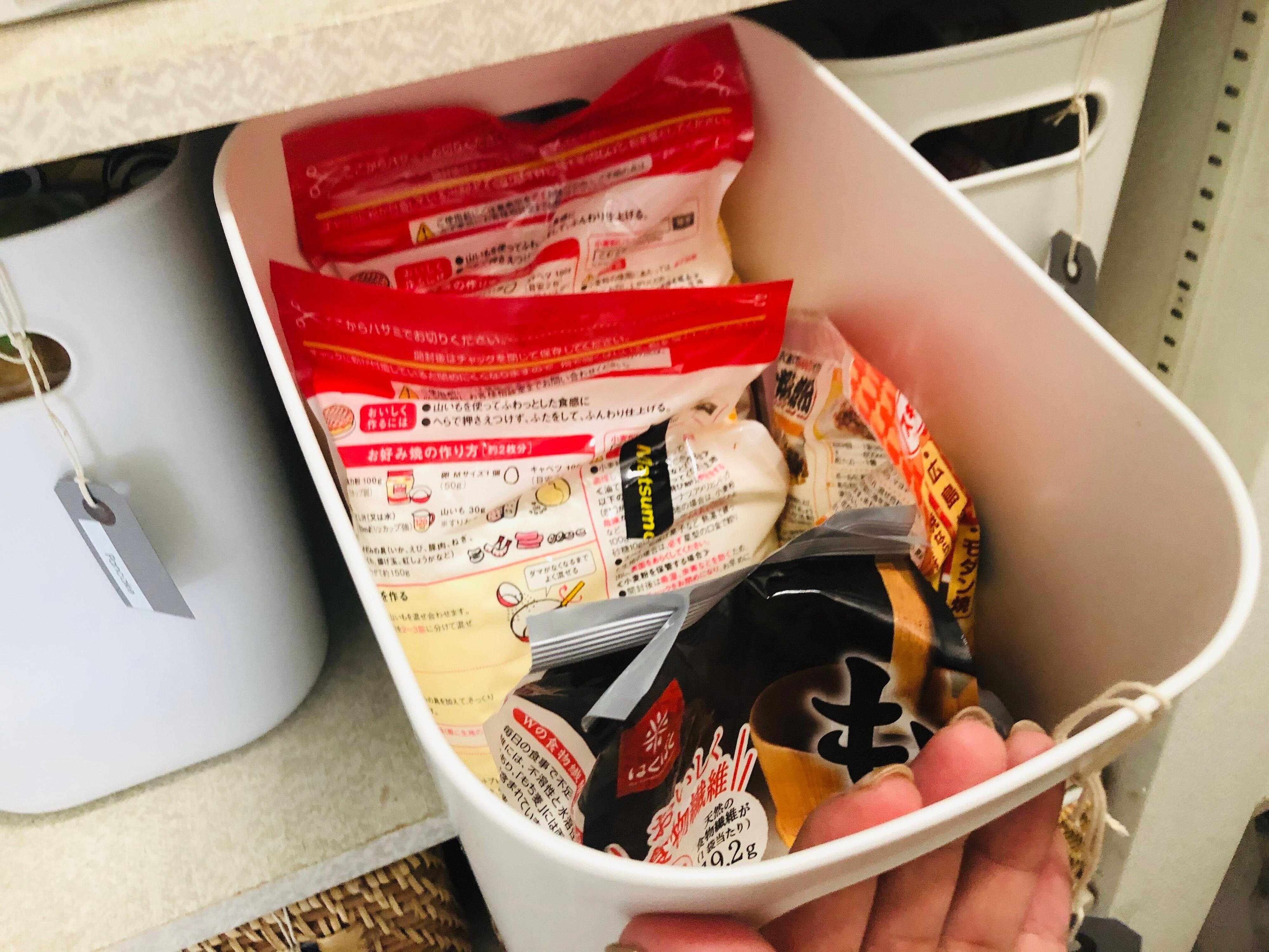 わが家では食品をストックするパントリーの棚で「ハーフ・大サイズ」を使用しています。