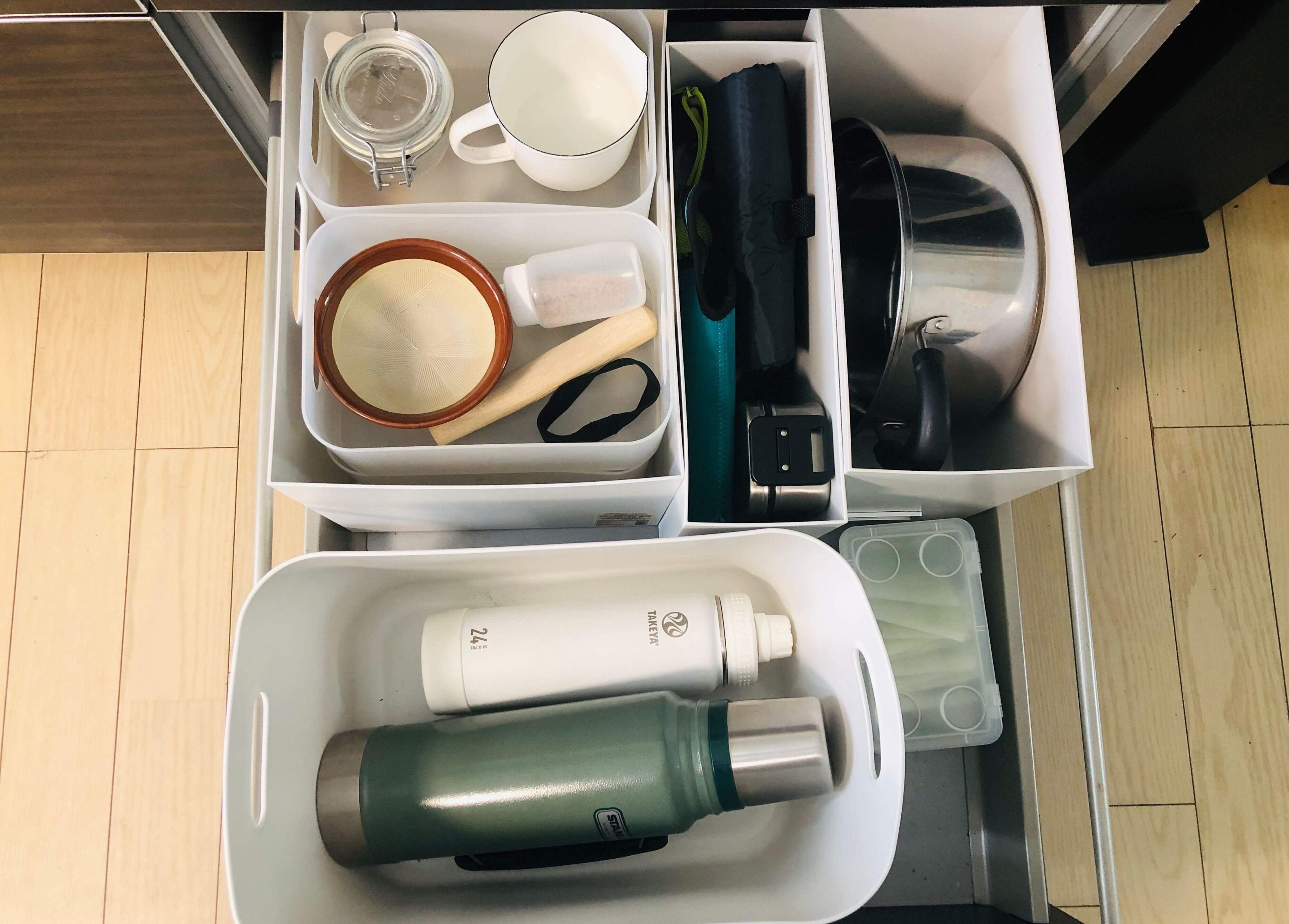 季節外のものを奥に、ケースごと引き出しの中で入れ替えすればより便利にものの管理ができます。