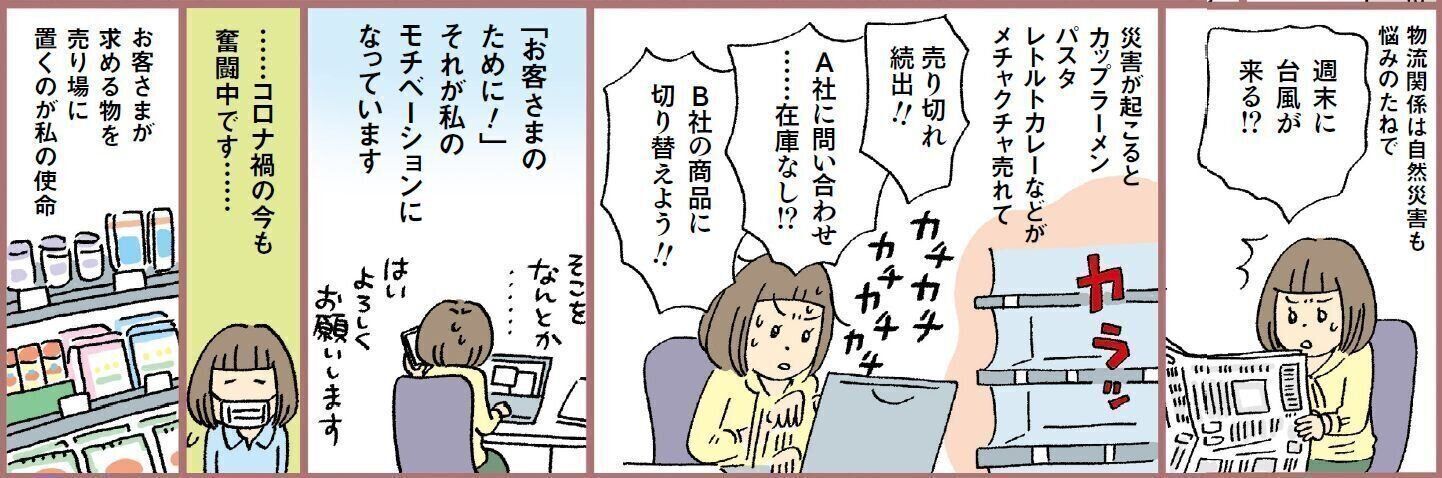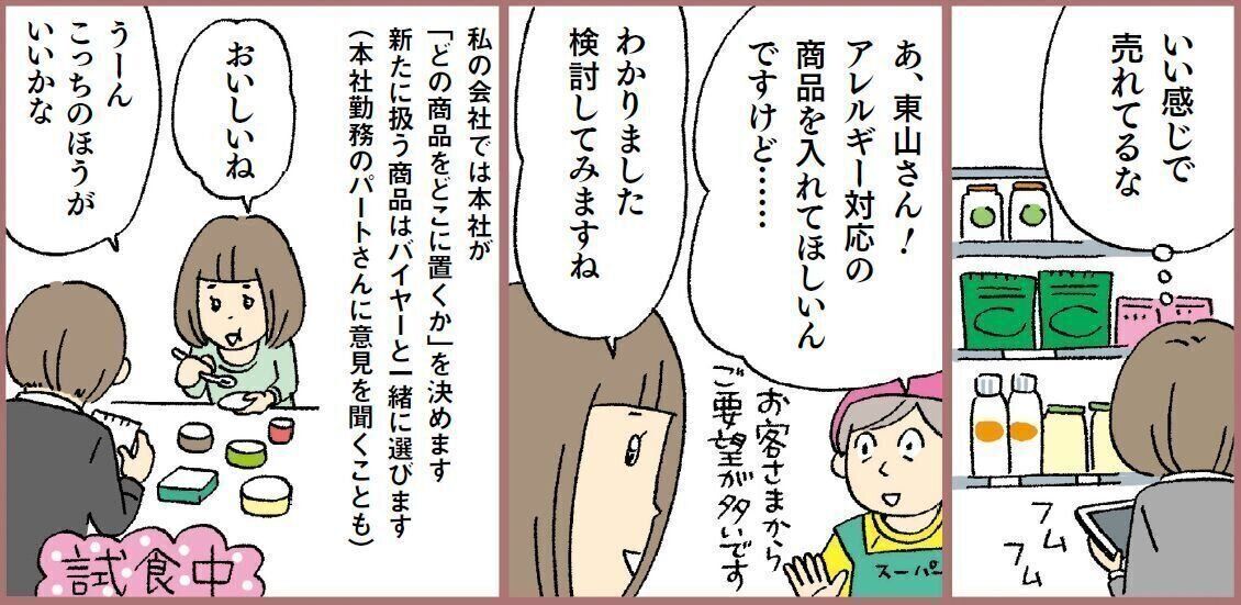 トラブルへの対応力と商品選びの提案力が光る東山さん。どんなときもお客さまが求める品を届けるべく使命感を持って働く姿に頭が下がります。スーパーで働く意味と価値を、コロナ禍で再確認されたのでは?