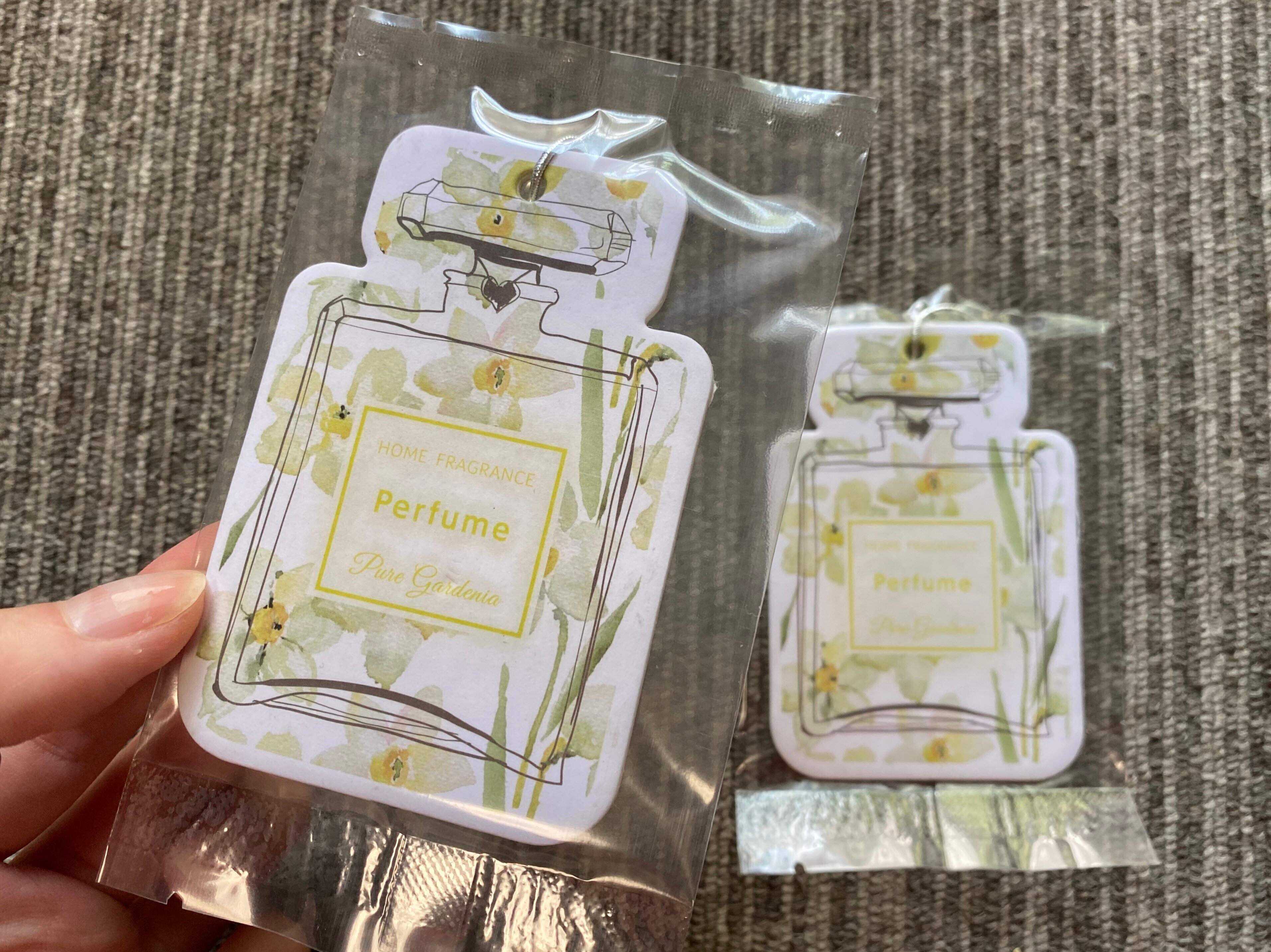 もうひとつのおすすめは、かわいい香水瓶の形をしたサシェ。香りが染み込ませてあるタイプの「サシェ パフューム (ピュアガーデニア)」です。価格は277円。