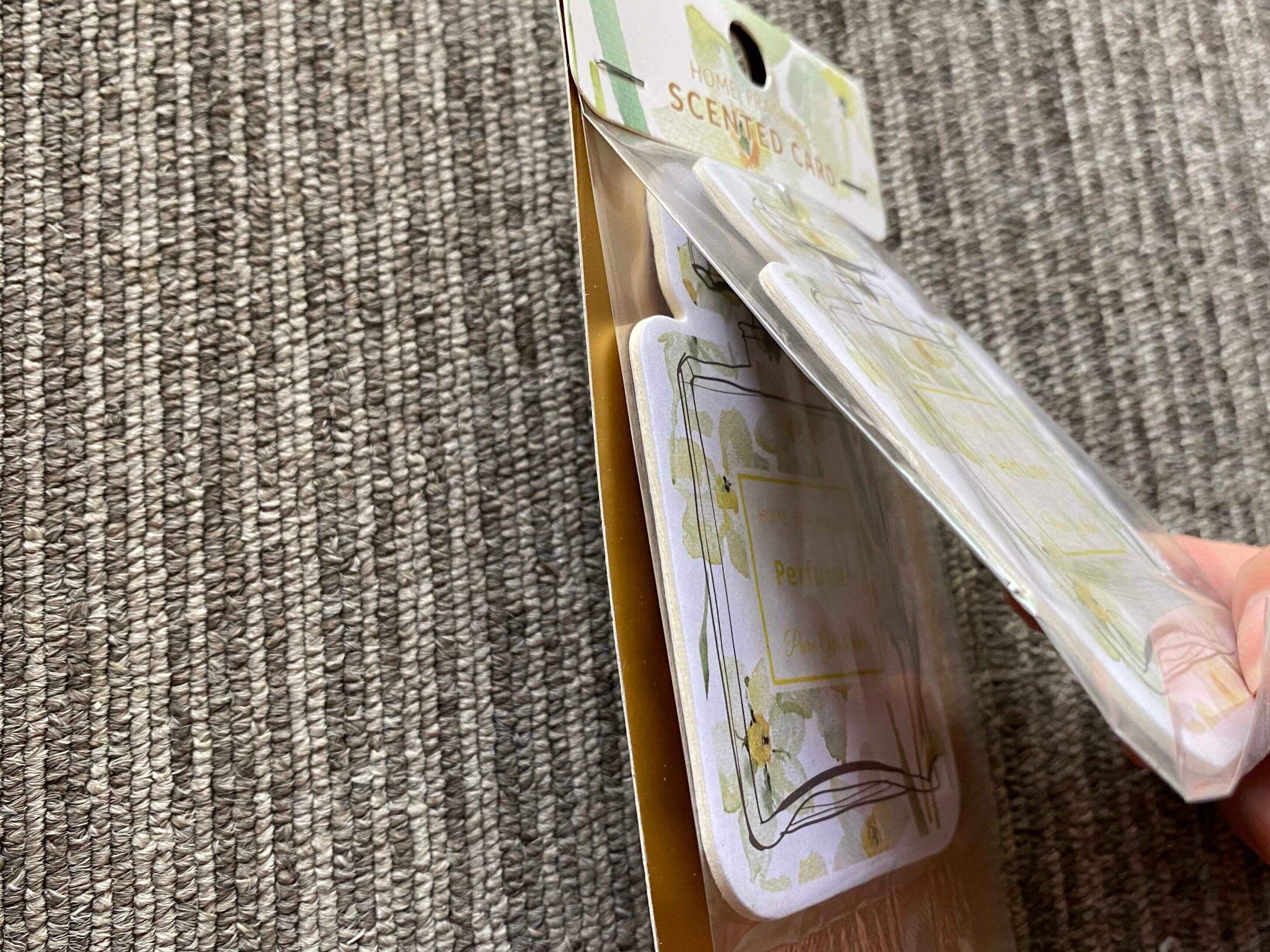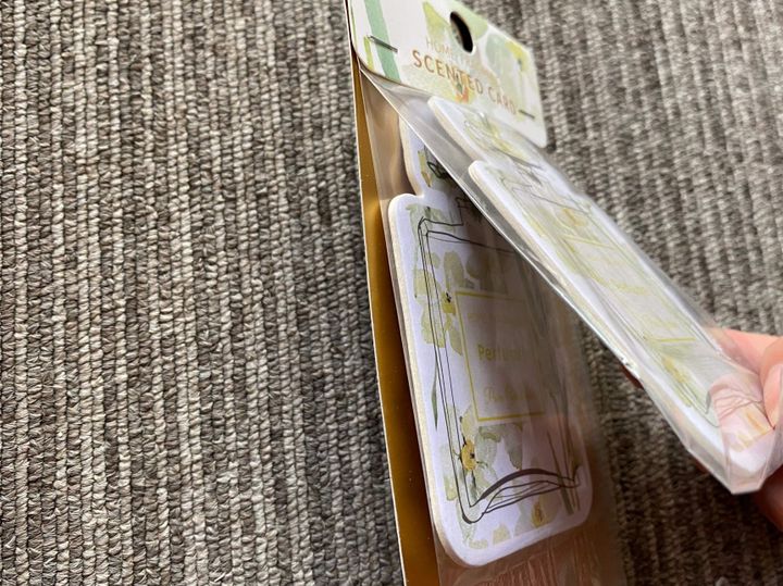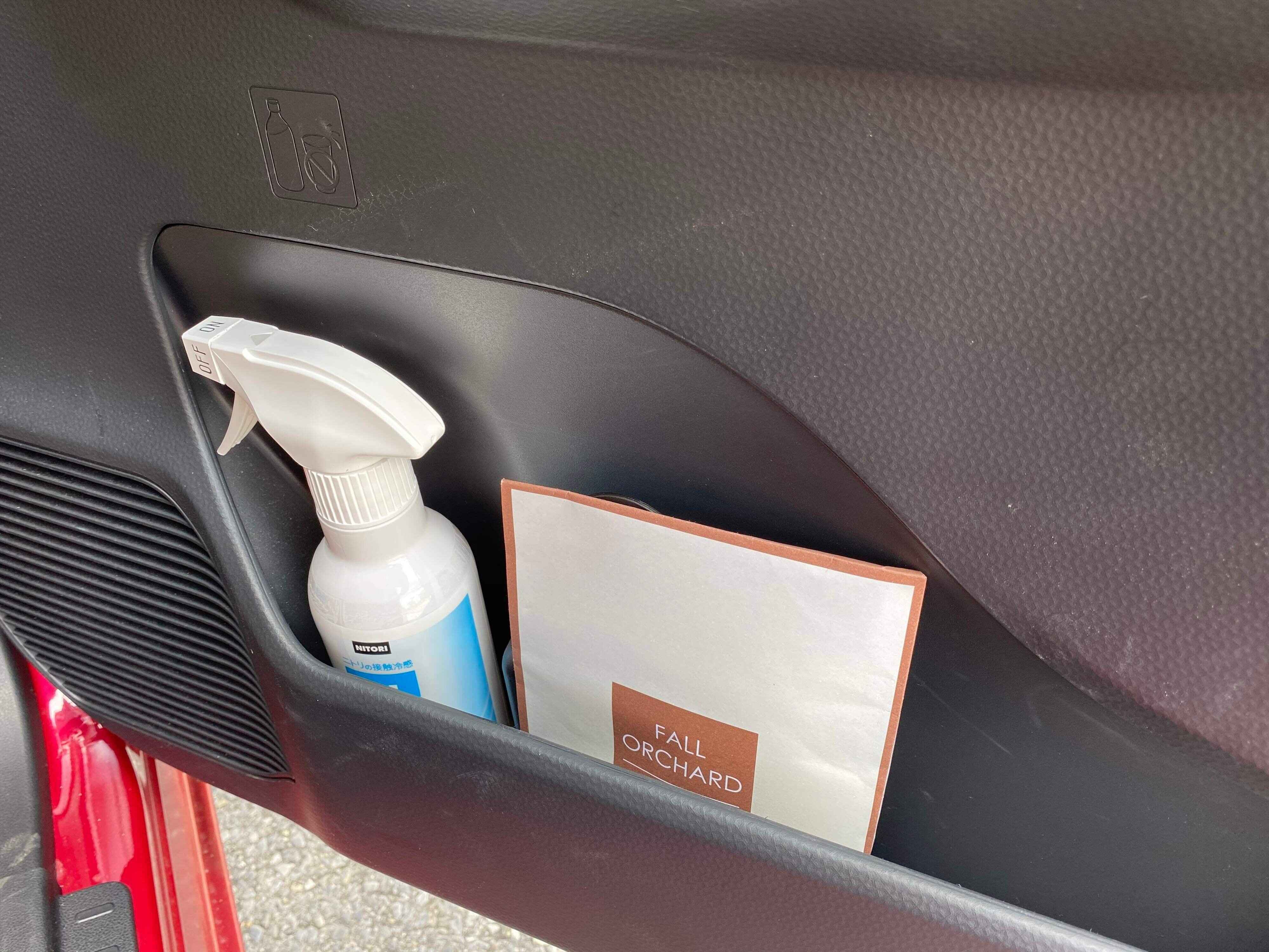 なお本商品は2個セットになっているので、筆者の場合1つは車のサイドポケットに入れています。こんな風に、車内のフレグランスとしても使えちゃうんです!