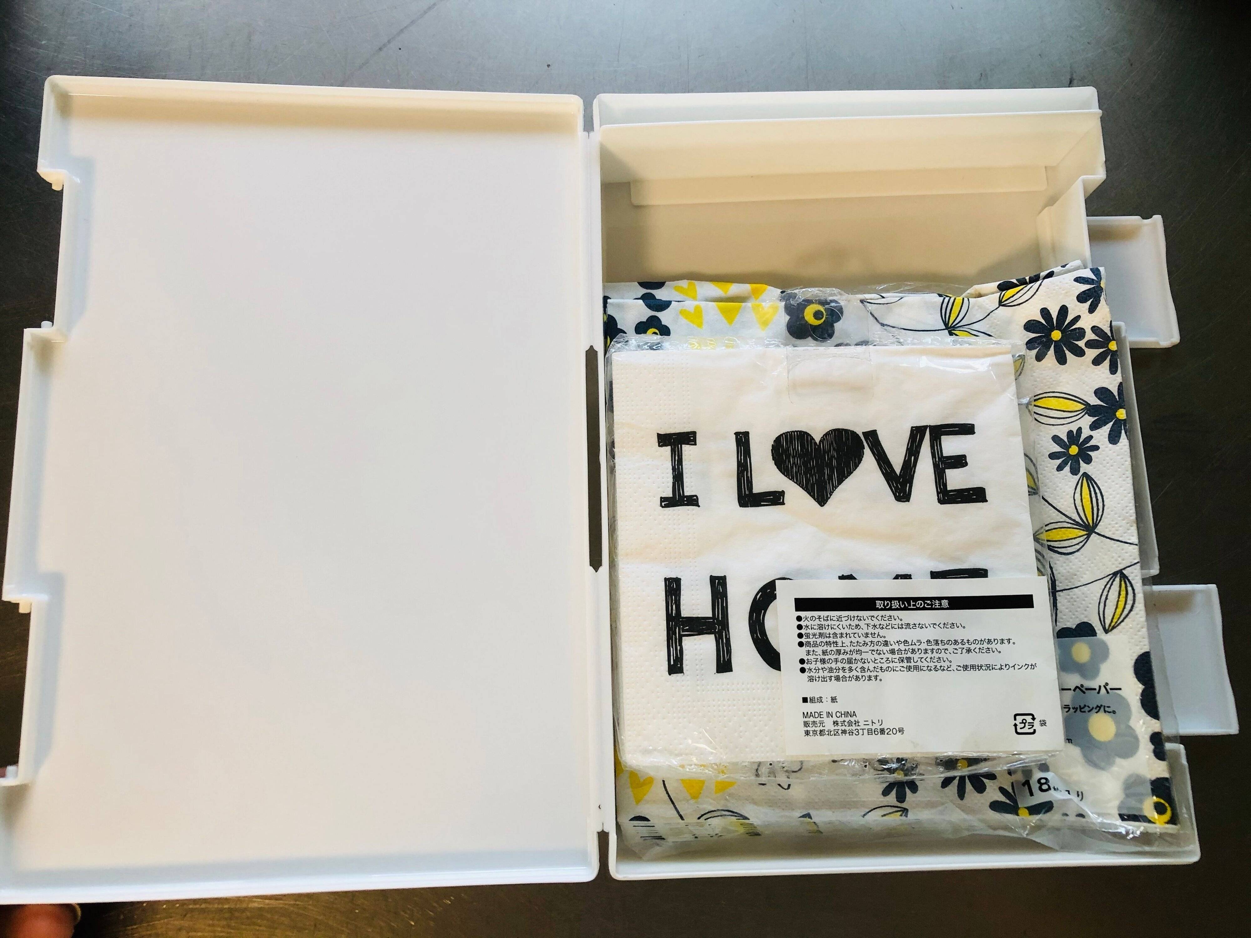 買ってきたままのビニール袋だと粘着部分にくっついてしまったりしてしまうので、袋から出して収納すると、粘着テープを剥がす手間も省けるし、取り出すときにテープにくっついてしまうストレスもなくなります。