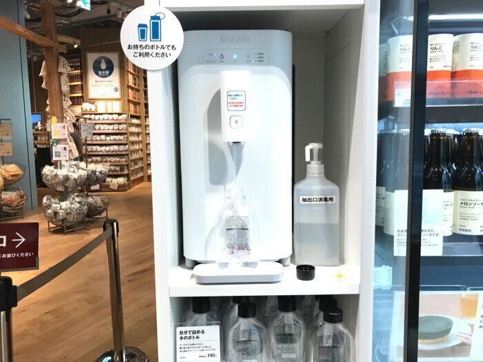 7月1日から順次、無印良品の店鋪に各自が自由に利用できる給水機が設置されています。この給水器、「自分で詰める水のボトル」を持っていなくても利用可能なのがうれしいところ。持参した水筒などでも、新鮮な水が給水できるのです。これぞエコ!ですね。