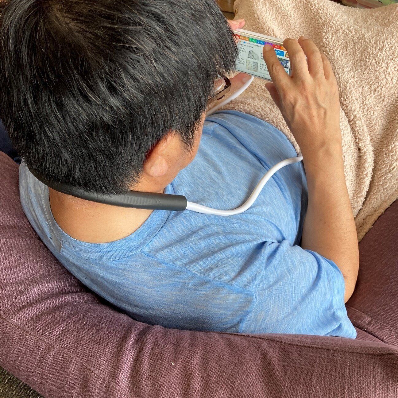 寝ても立っても座っても。スマホネックホルダーの使いかた