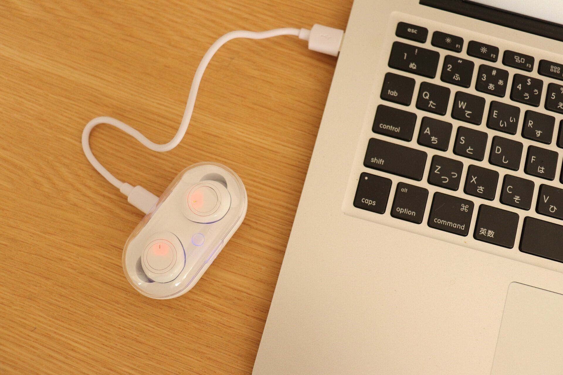 ケースへの充電はUSBポートからできちゃいます。充電時間は約1〜2時間。短時間で充電できて長時間使える!こんなところも高ポイント!